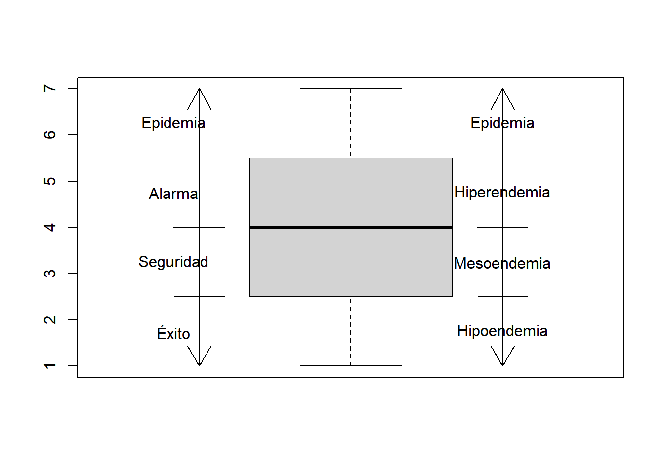 Hay una relación entre el canal endémico calculado mediante el método de los cuartiles y los boxplot (también llamados gráficas de cajas y bigotes).