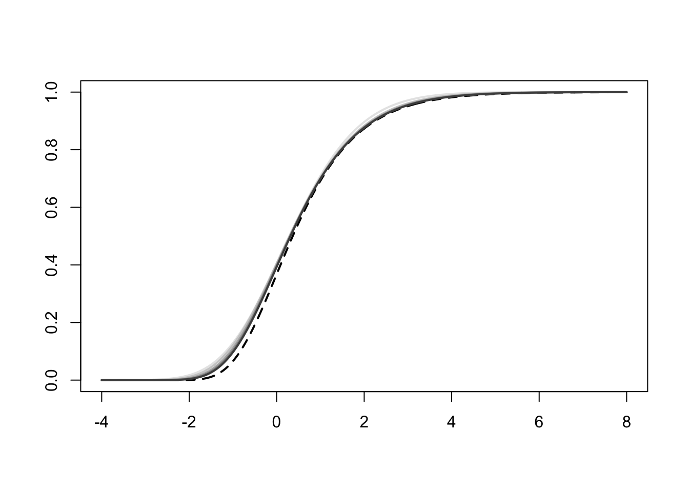 matlines(z, max_cdf, lty = 1, lwd = 2, col = grey.colors(length(n), rev = TRUE))