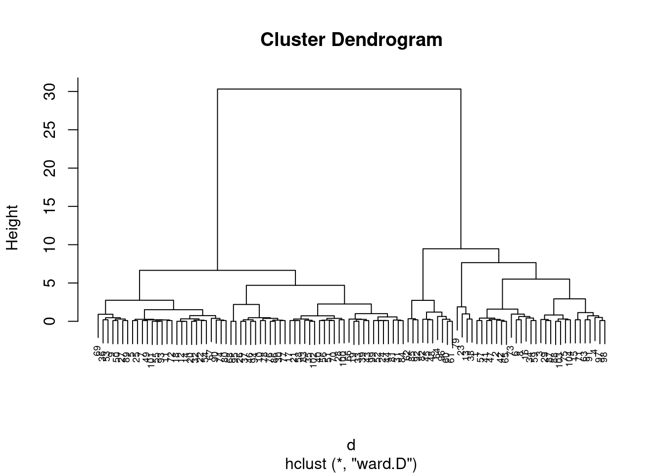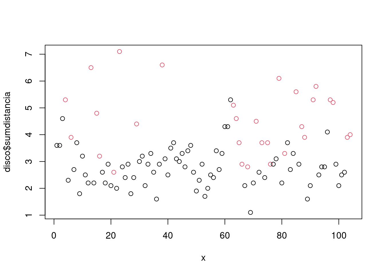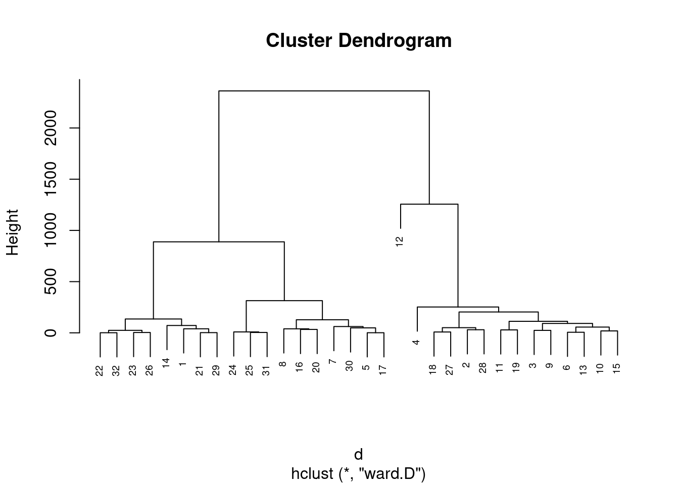 groups <- cutree(grup, k=3)table(groups, disco$deslocamento)##