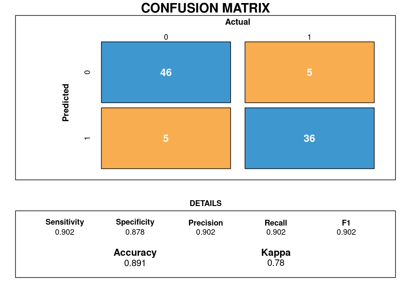 model_eval[nrow(model_eval) + 1,] <- c("modRedNeural01", "neuralnet", cm$overall['Accuracy'], cm$byClass['Sensitivity'], cm$byClass['Specificity'])2.5.29 KNN