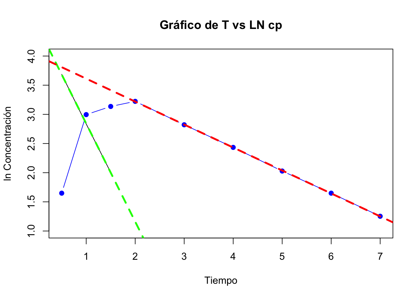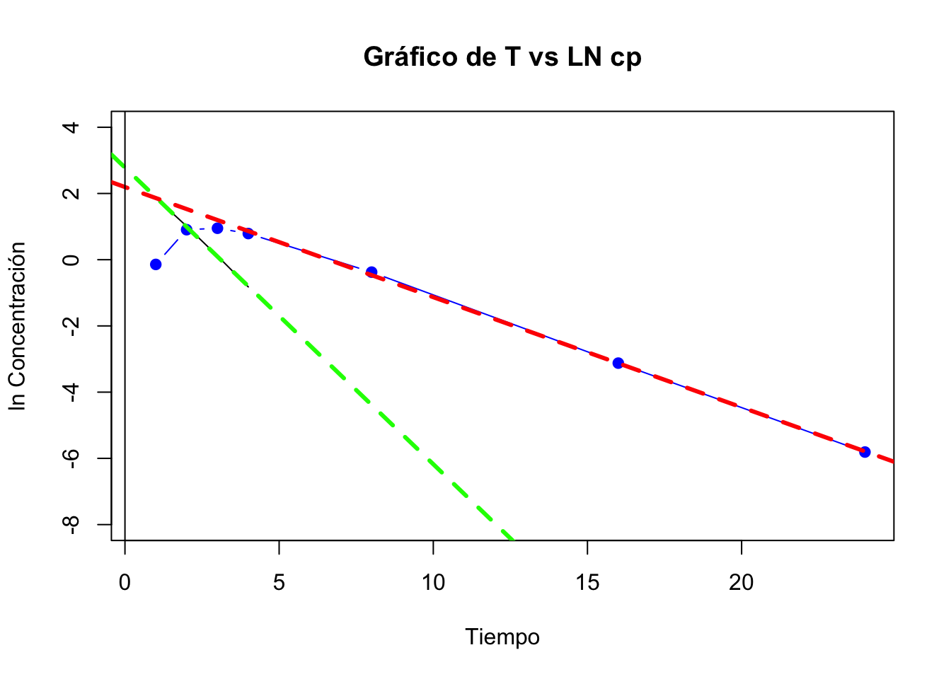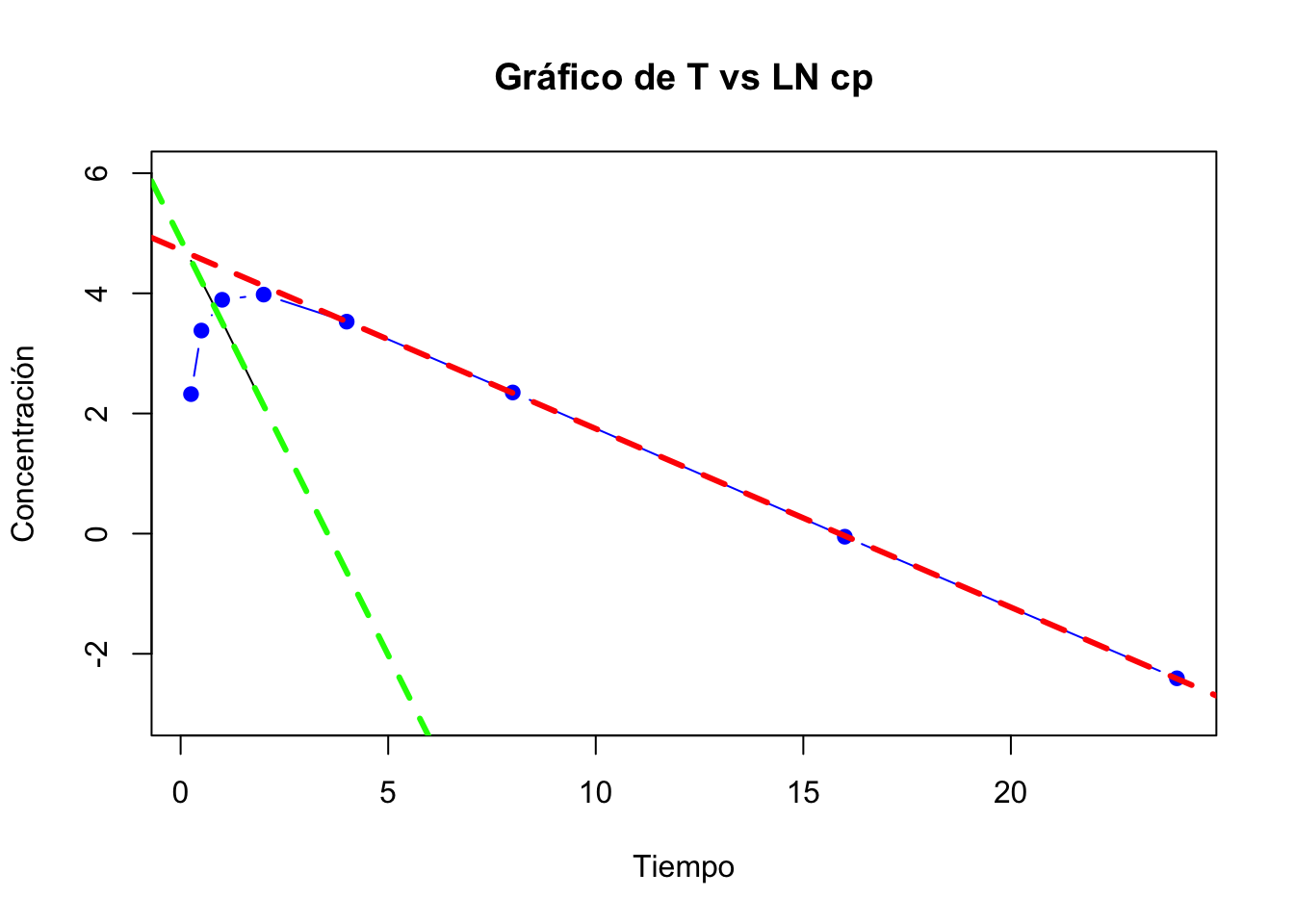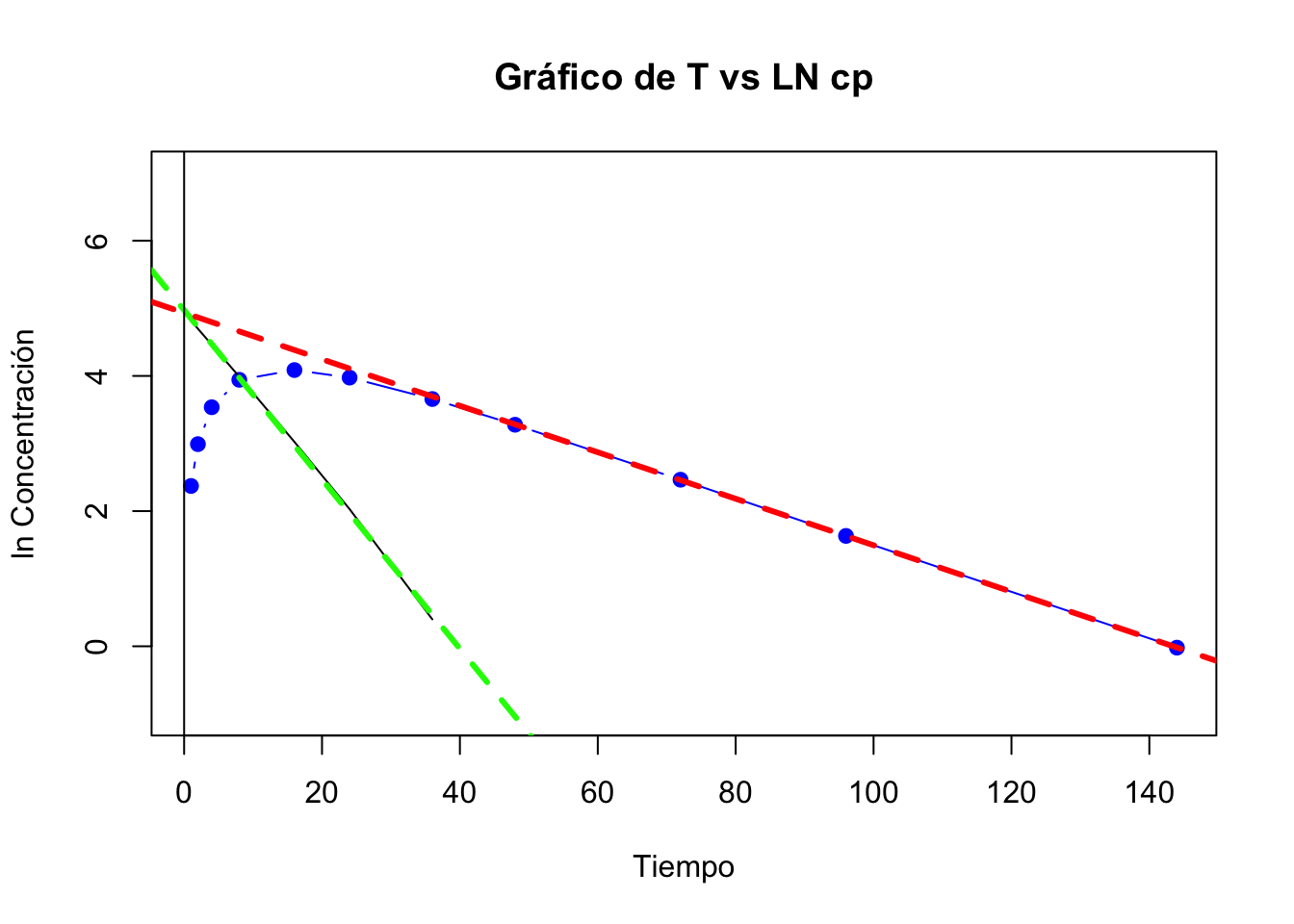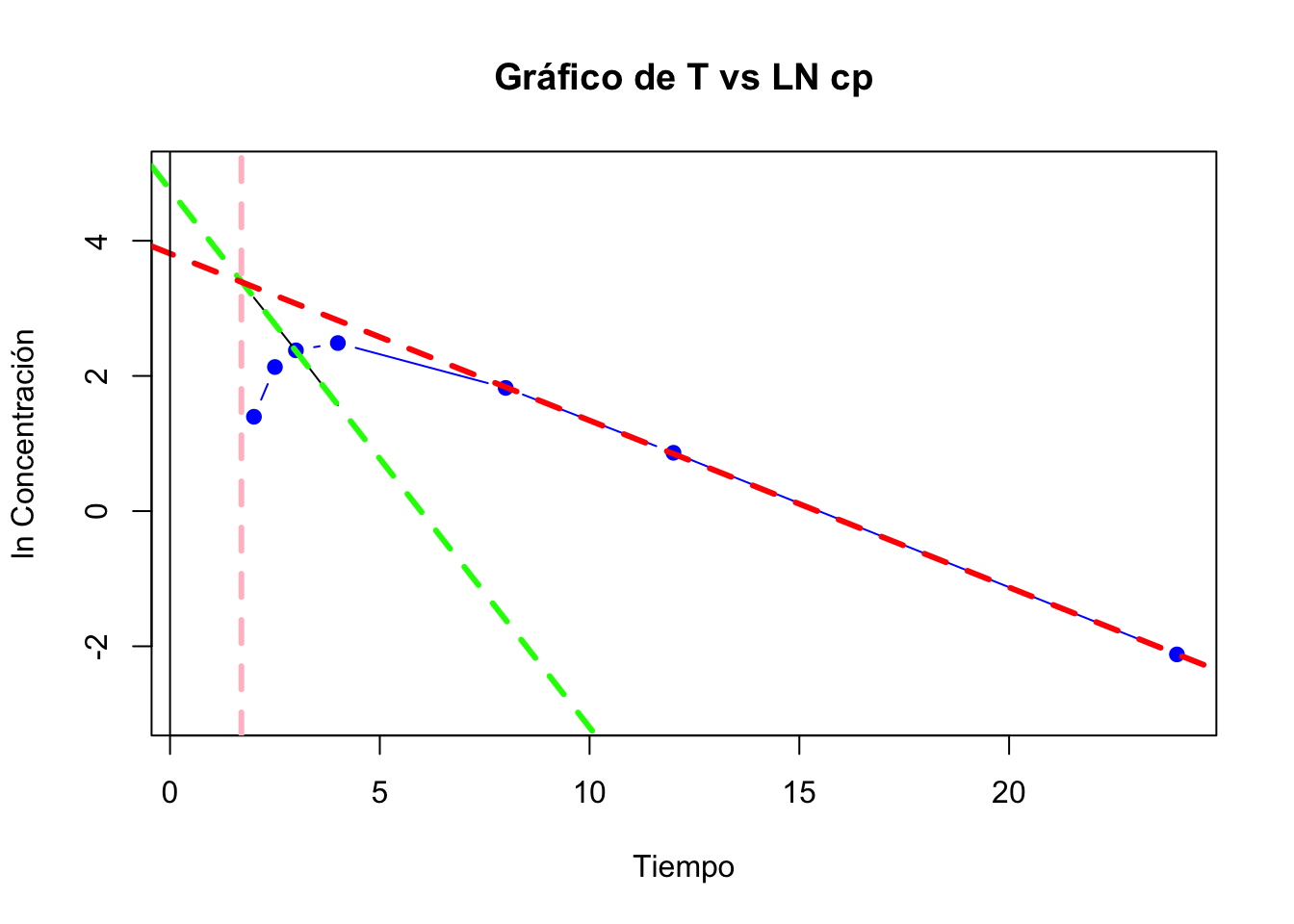 Parámetros sin tiempo de latencia y biosdisponibilidad de 1.