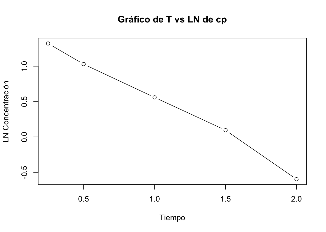 Ejercicio 2.4 En un estudio de biodisponibilidad se ensayan dos formas farmaceúticas, una solución para administración intravenosa de 300 mg y un comprimido de 500 mg. Después del análisis de los resultados obtenidos para la vía parenteral, se llega a la conclusión de que estos se ajustan a un modelo monocompatimental cuya ecuación es: