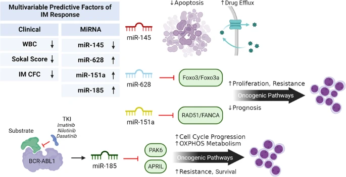 Aplicaron un modelo de ML utilizando 16 miRNAs e identificaron efectivamente a pacientes con resputa la Imatinib