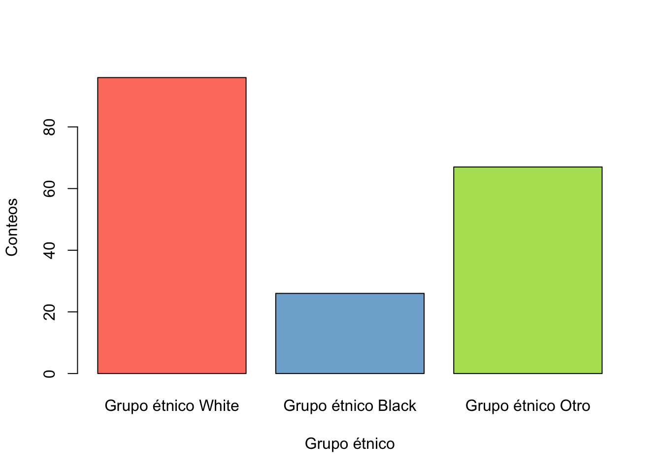 Ejercicio 8.15 Repita la gráfica de barras del ejercicio anterior utilizando la función plot() y luego mediante ggplot2.