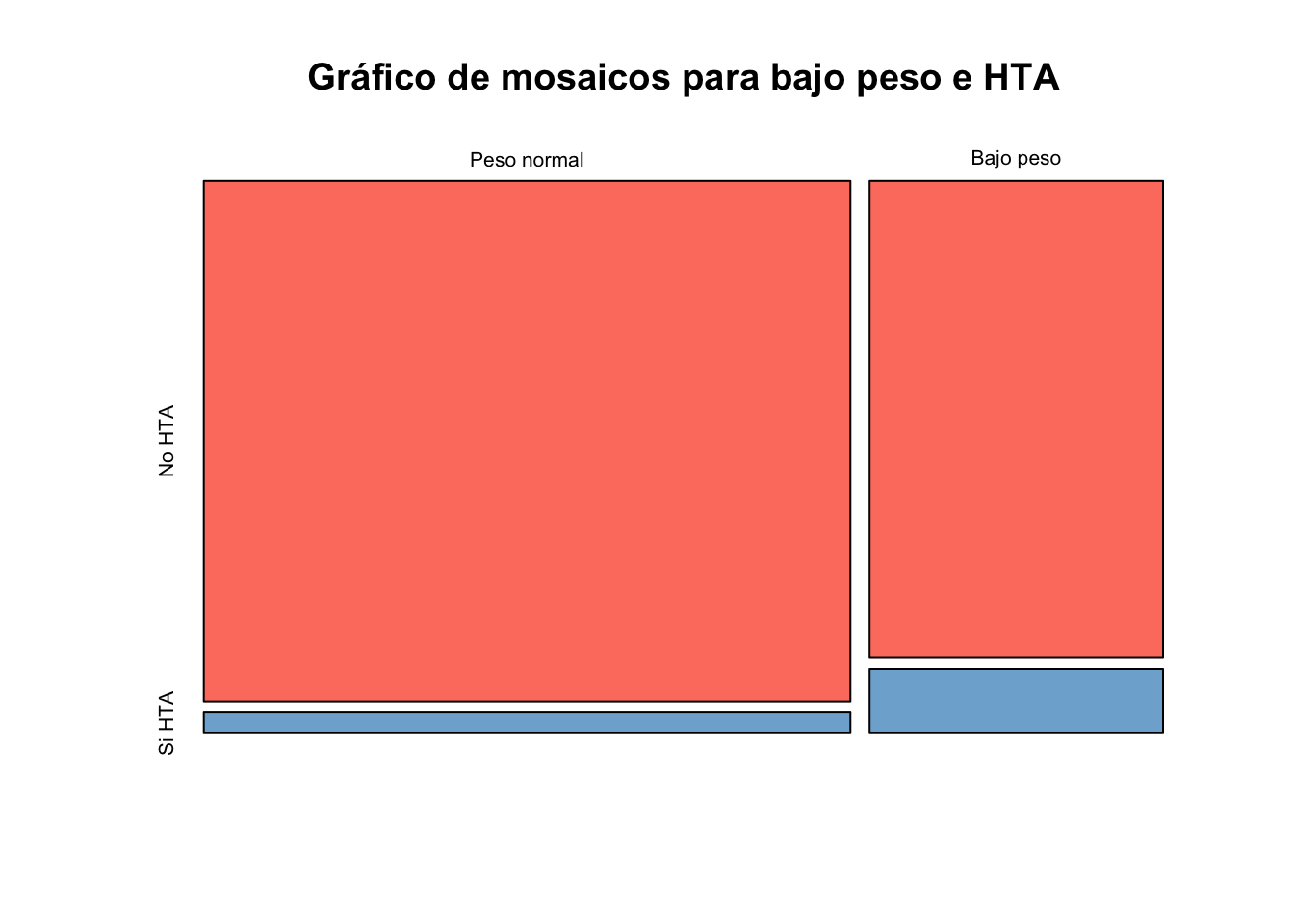 Ejercicio 8.16 Utilizando la base de datos birthwt de la librería birthwt genere un gráfico de mosaico con las proporciones de las variables low y ht. Realice una interpretación de su gráfico