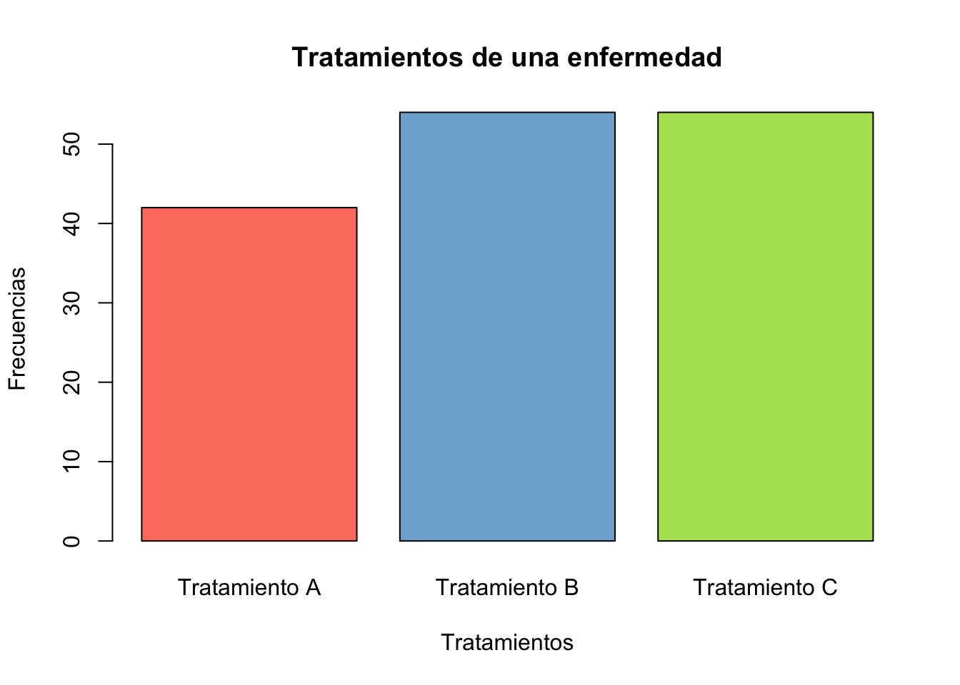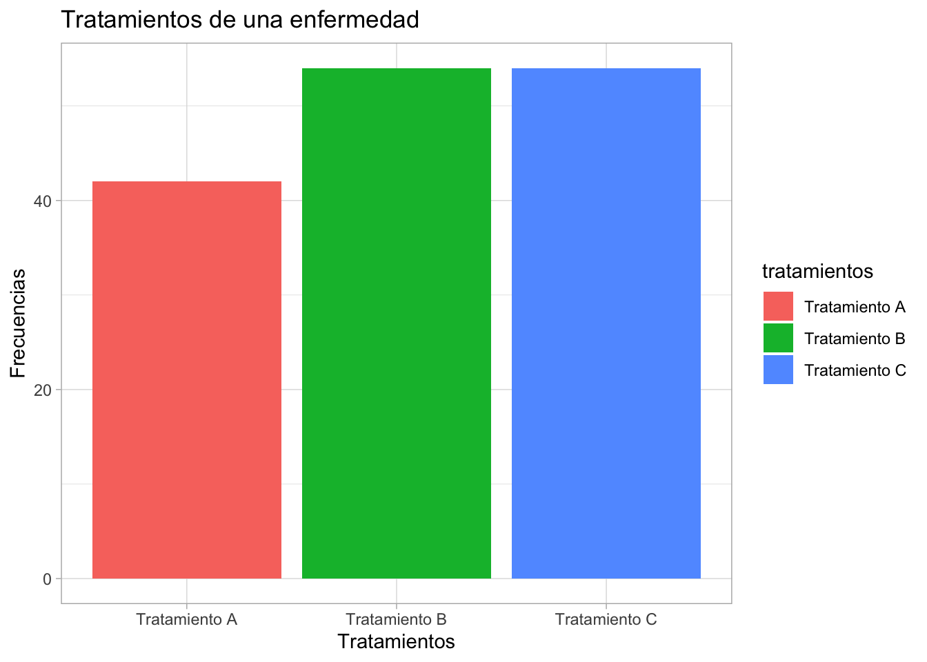 Ejercicio 8.17 Se tiene un conjunto de datos que incluye el tipo de tratamiento recibido por pacientes con una enfermedad específica: Tratamiento A, Tratamiento B, o Tratamiento C.