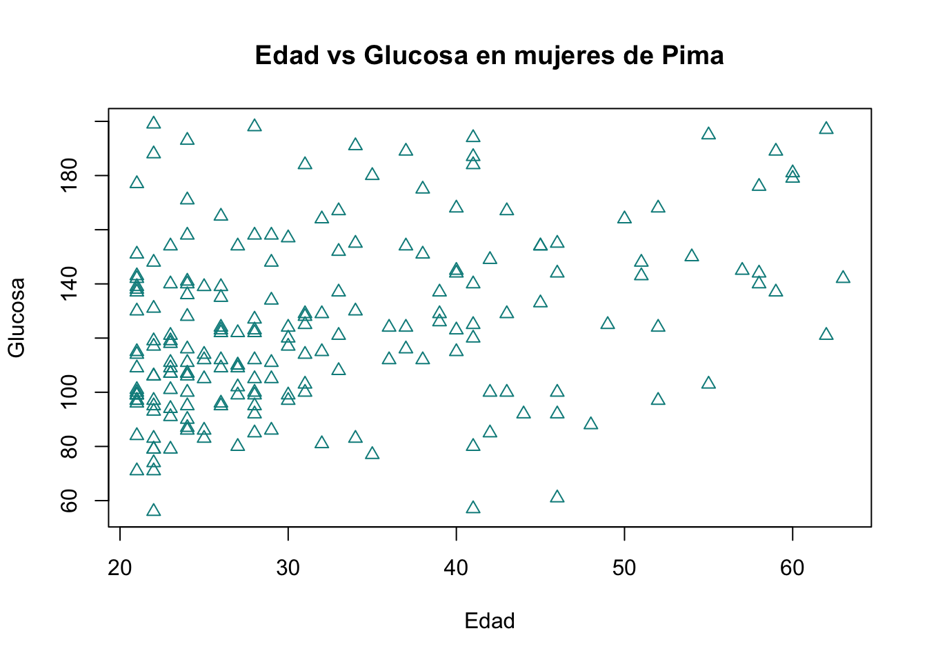 data("Pima.tr")La primer capa de ggplot2 son los datos. ggplot2 necesita un Dataframe para poder construir un gráfico, en ciertas circunstancias no es necesario un Dataframe pero si la mayoría de los casos. Esta es una de las principales diferencias entre construir gráficas en el paquete base y en ggplot2.