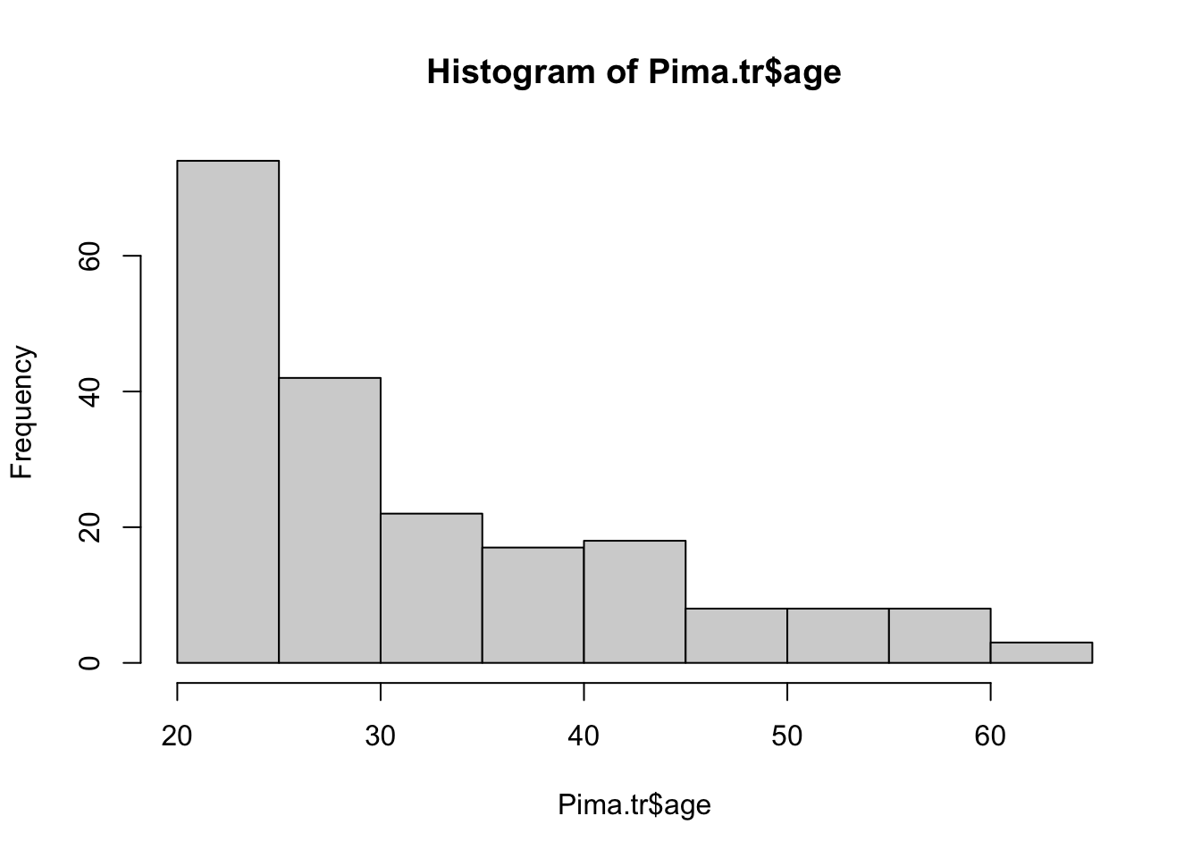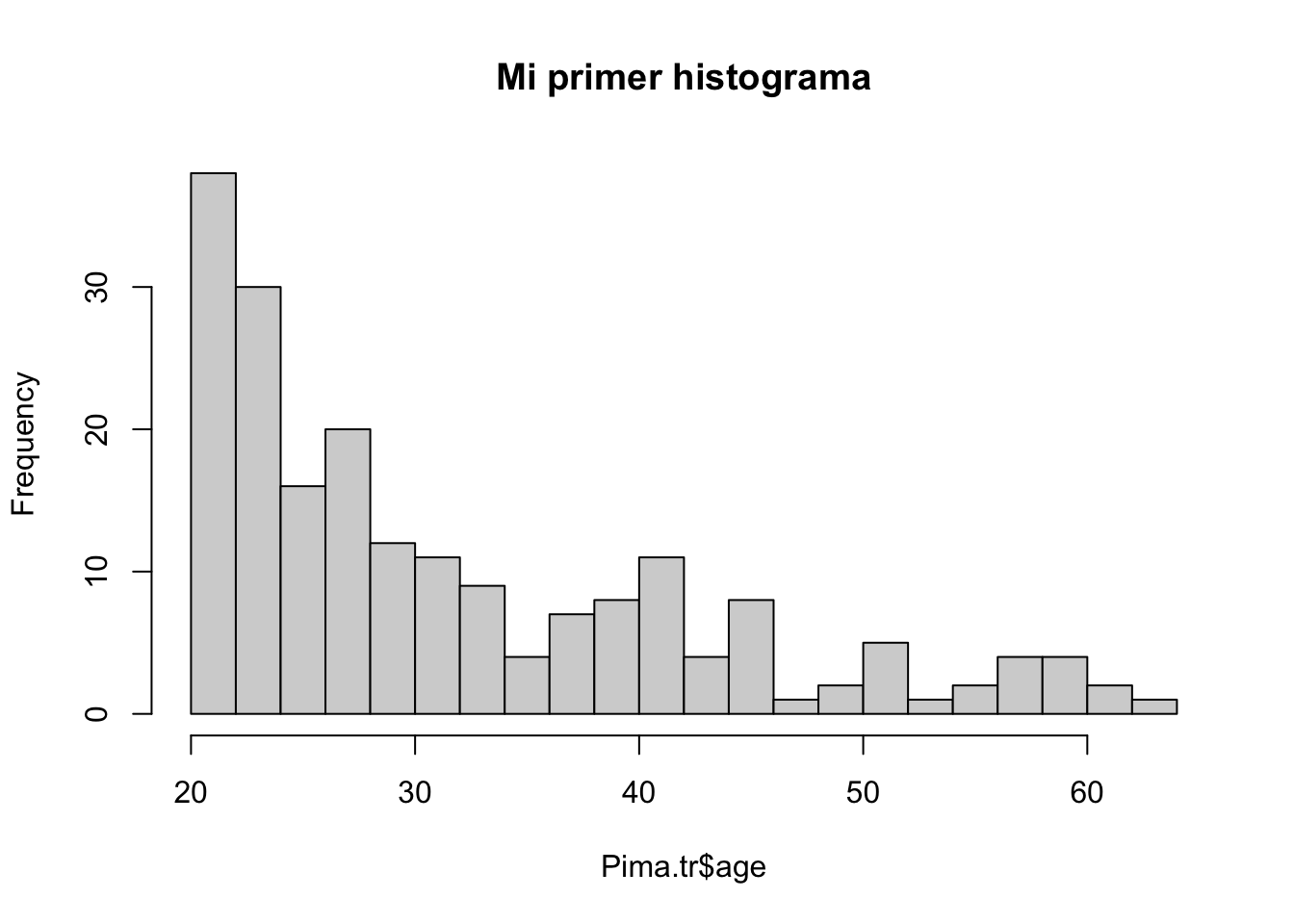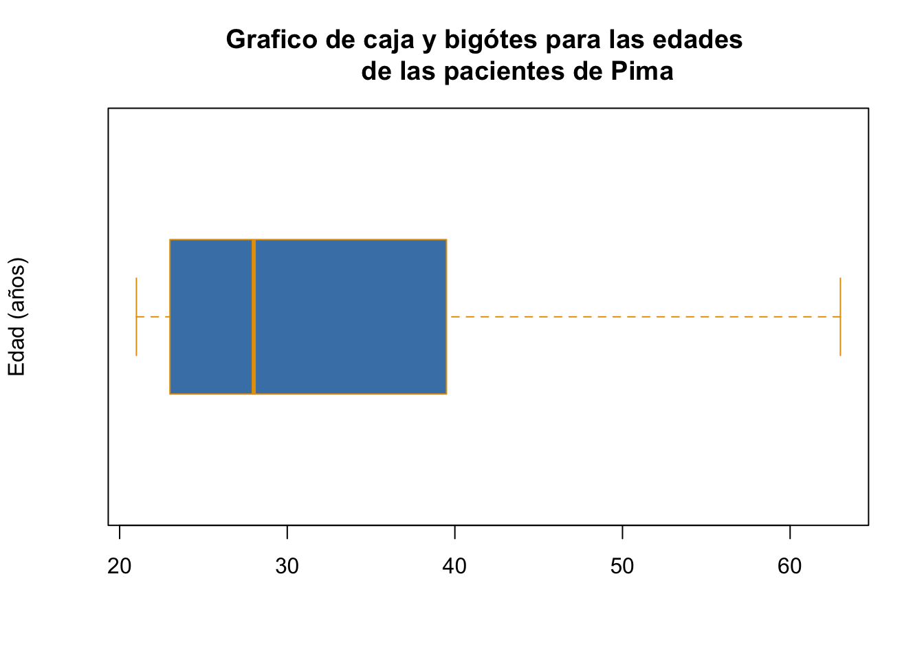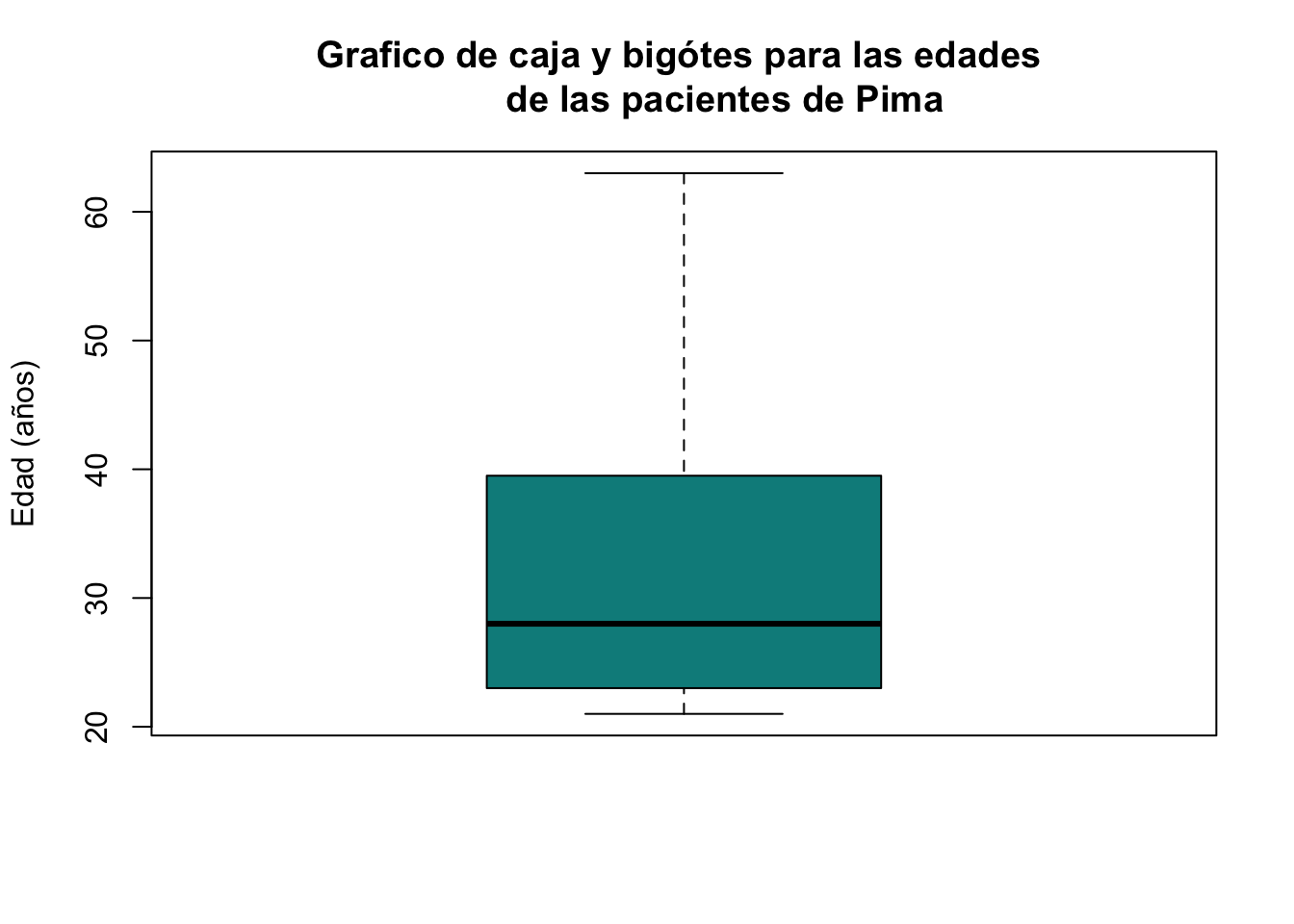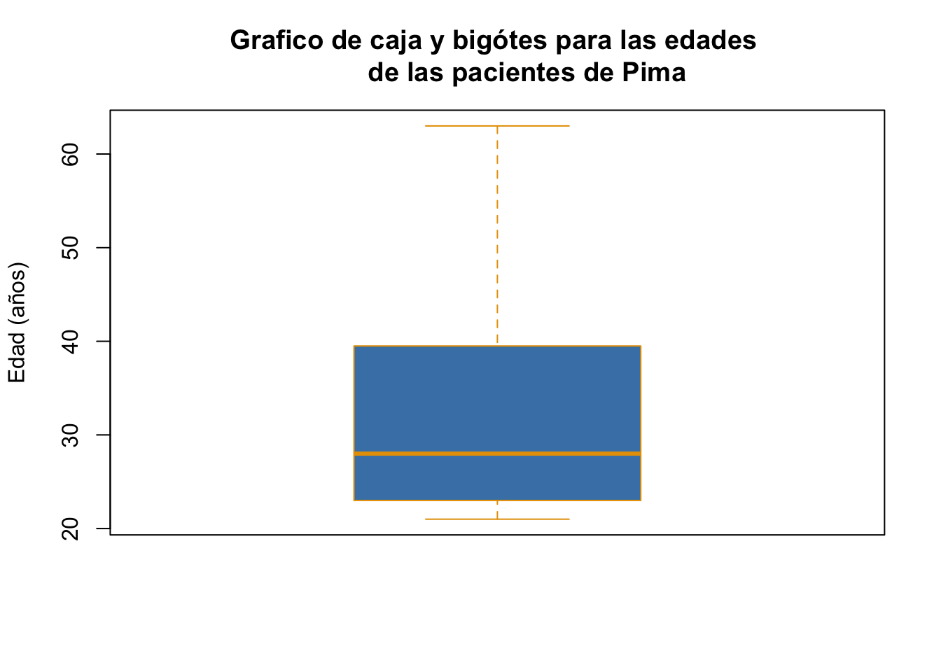 La principal peculiaridad del código es: Pima.tr$age~Pima.tr$type. Esta estrategia se conoce como formula, que se lee como la edad agrupada portype. En este caso el símbolo ~ significa agrupación.