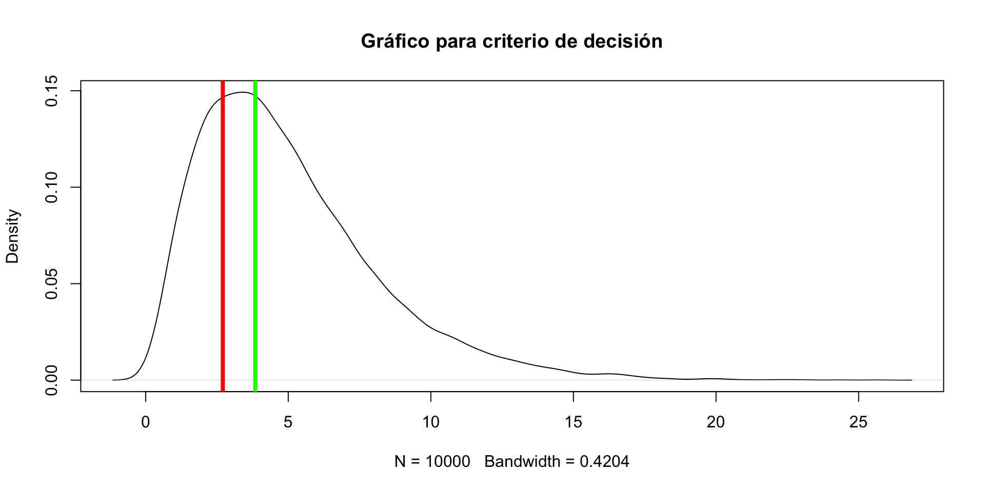 Se rechaza la \(H_0\) porque 3.12 es mayor a 2.7, es decir, está más a la derecha de la curva. la región de rechazo se encuentra a la derecha de la distribución