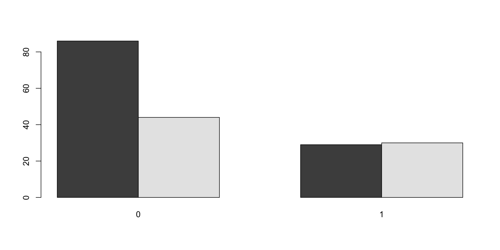 Un grupo de investigadores desea conocer, si el fumar en el primer trimestre del embarazo se asocia al bajo peso de los recién nacidos. Estos datos fueron capturados en la base de datos “birthwt”. Utilice \(\alpha\) de 0.05, construya un gráfico de barras y reporte los valores esperados por casilla