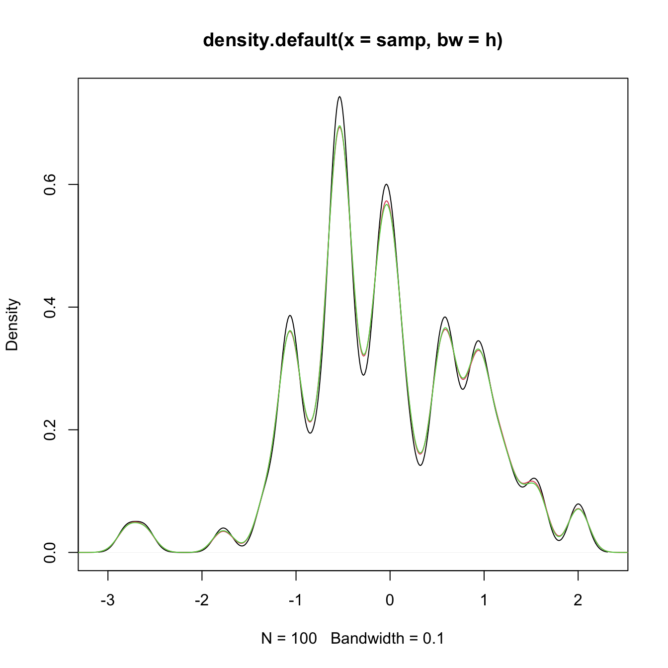 sampKde[k] <- rnorm(n = 1, mean = samp[i], sd = h)