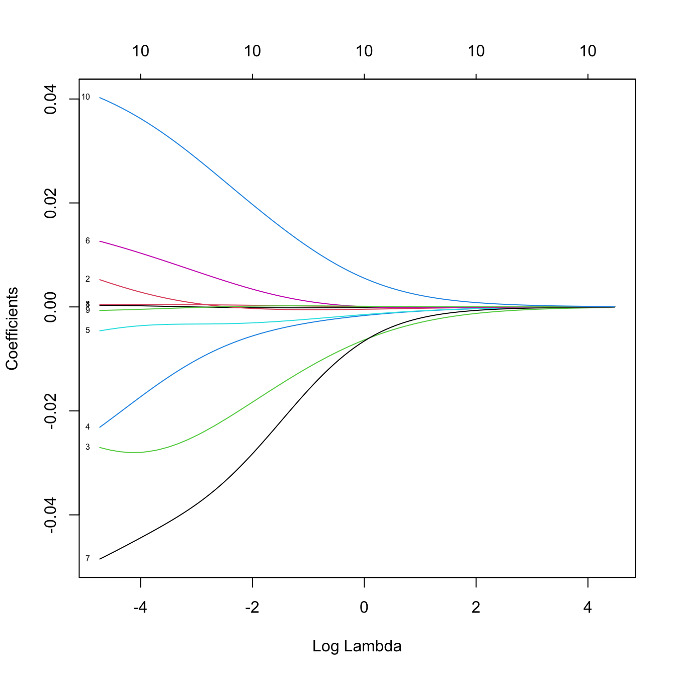 ridgeMod <- glmnet(x = x, y = y, alpha = 0, family = "binomial")