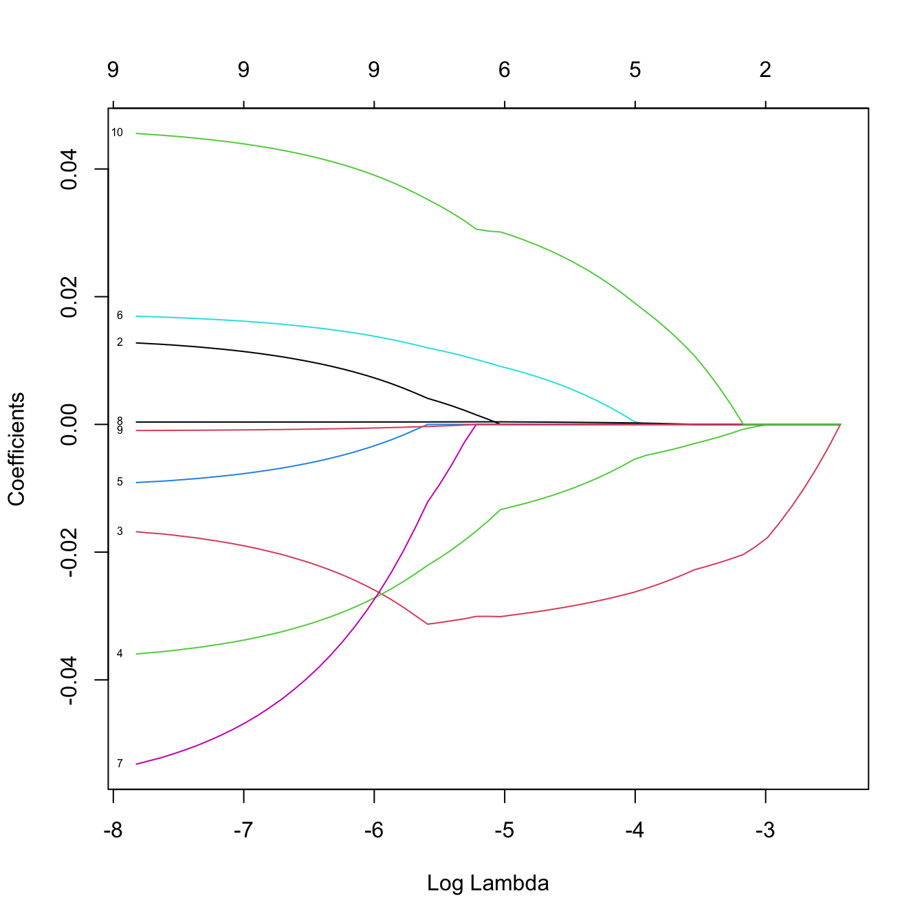 lassoMod <- glmnet(x = x, y = y, alpha = 1, family = "binomial")