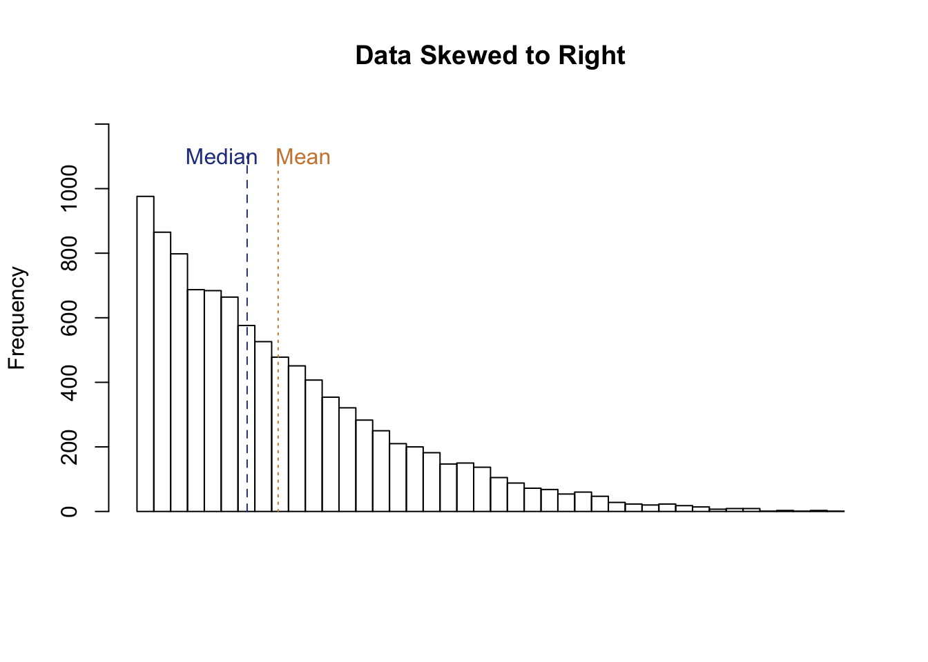 Let’s use an example to describe why we might want to look at both the mean and the median.