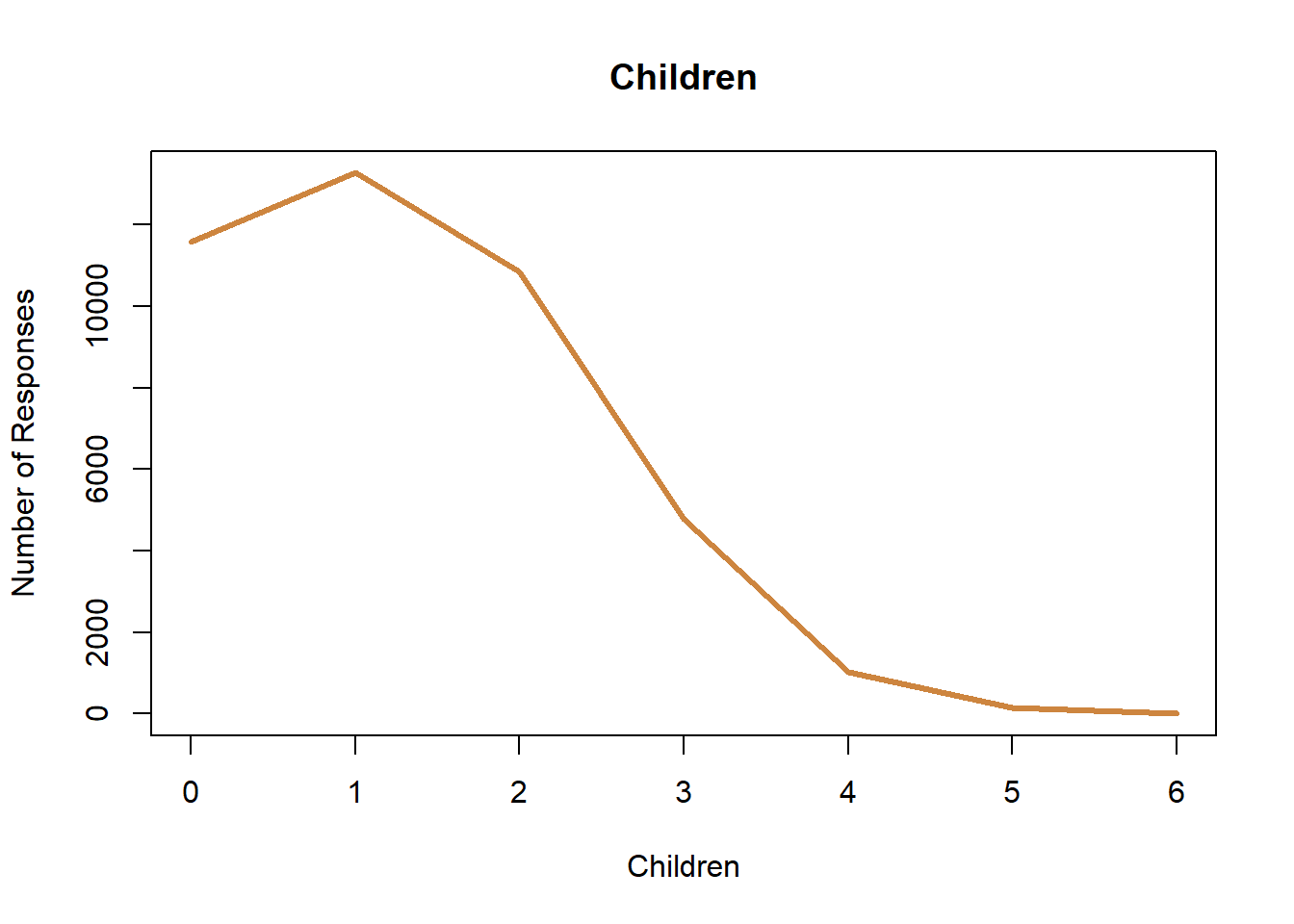 Bar charts can also work for discrete data, particularly when there aren’t very many different options in the data. Take for instance the number of children for respondents on a survey.