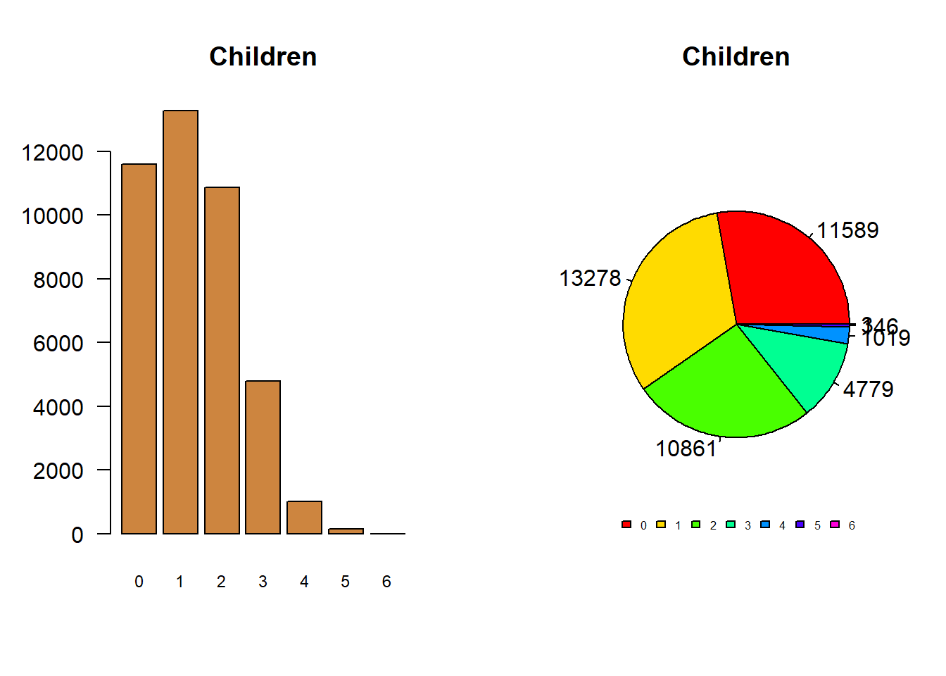 So that’s an extra step to make the two graphs equivalent. You might prefer the pie chart, but it really doesn’t add anything and is typically a little harder for the reader to quickly interpret. And it gets worse if you have a lot of categories in your data. Let’s look at what happens if I make a pie chart for the number of children people have.