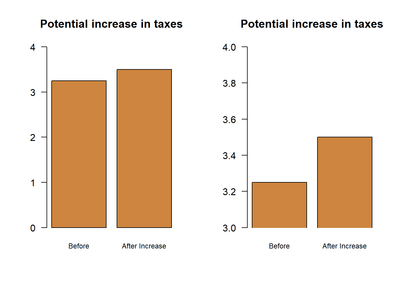 And maybe we want to adjust the y axis so that we can see exactly how high each bar goes. We can do that with ylim, which we need to give a list of two numbers to set the minimum for the bar (usually 0) and the maximum. We can do the same thing for the x axis with xlim, but for a barchart that isn’t necessary.