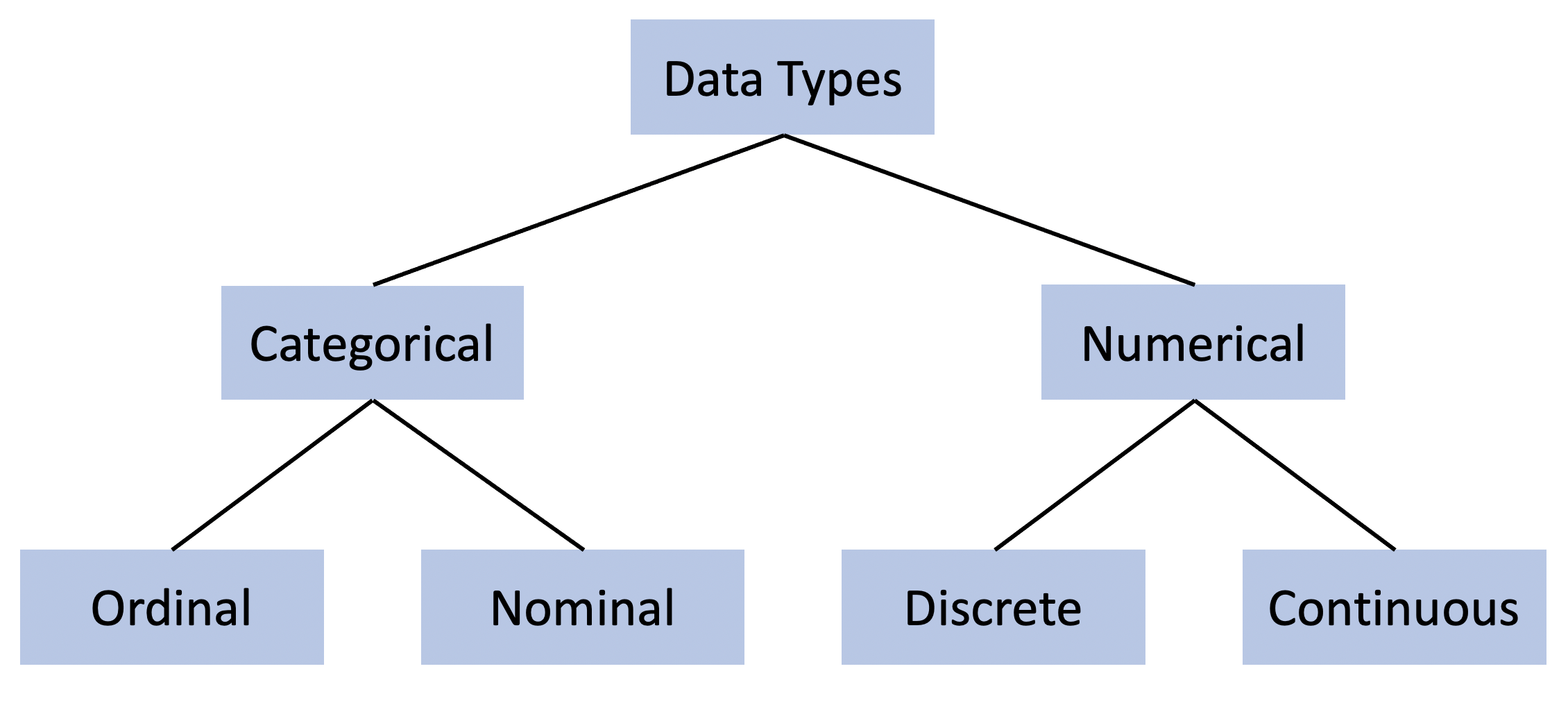 There are four types of data we’ll worry about here, which are summarized in the flowchart below. We’ll talk about each in turn.