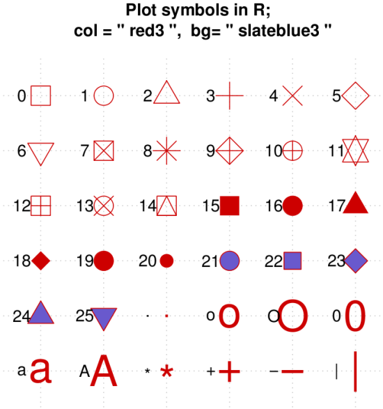 We can also change the shape of our dots using the option pch. pch stands for point character, if that helps anyone remember. I typically use number 16, but other options can look great too.