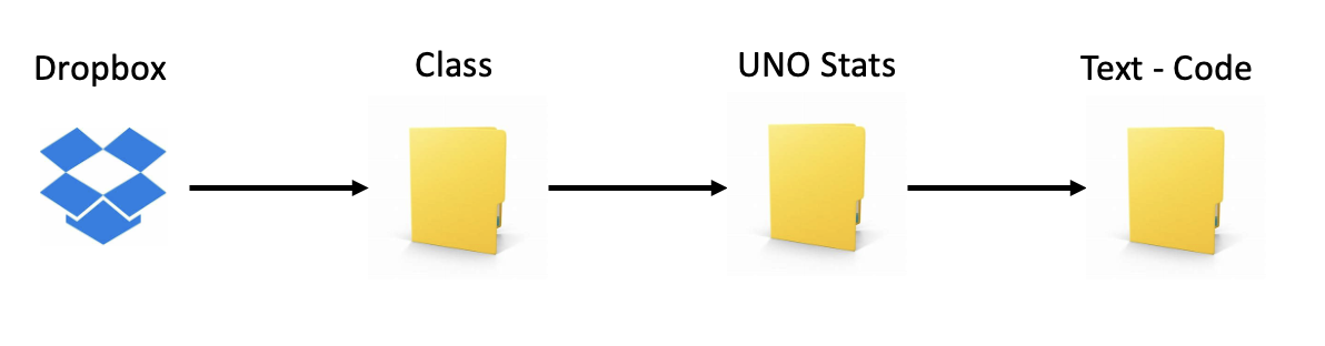 I’ve just moved my working directory one file back to the UNO Stats folder, rather than the textbook one. Let’s see what’s in my working directory.