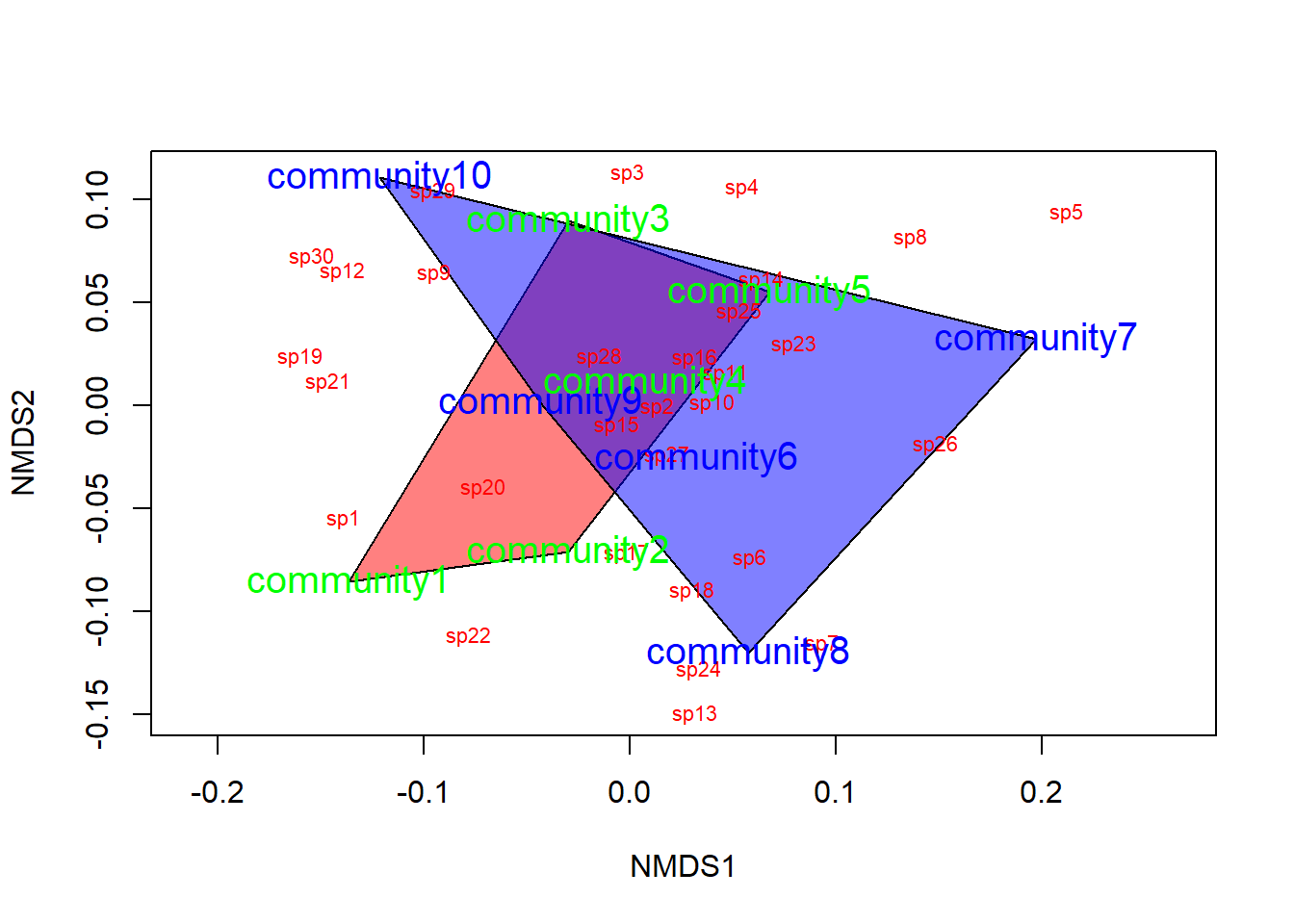 ordihull(example_NMDS$point[grep(i,treat),],draw="polygon",groups=treat[treat==i],col=colors[grep(i,treat)],label=F) }