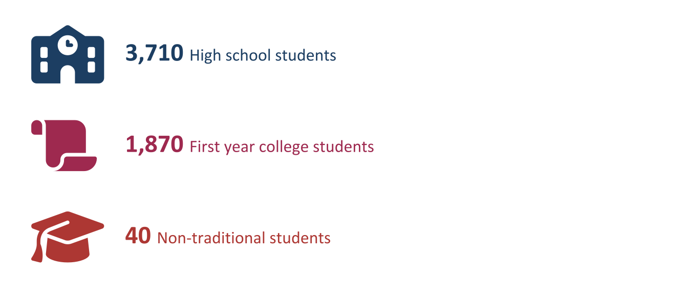 Community colleges enroll disproportionate numbers of students who are economically disadvantaged and from underrepresented minority groups (Edgecombe, 2019). Programs that support students as they transition into college are an important means for enhancing academic persistence and completion among these and other students (Baber, 2018). The ATE program supports efforts to facilitate students’ transition into college and equip them with the skills they need to successfully navigate college. Such programs include—but are not limited to—summer bridge programs, college readiness workshops or classes, first-year programs, and support for nontraditional students.