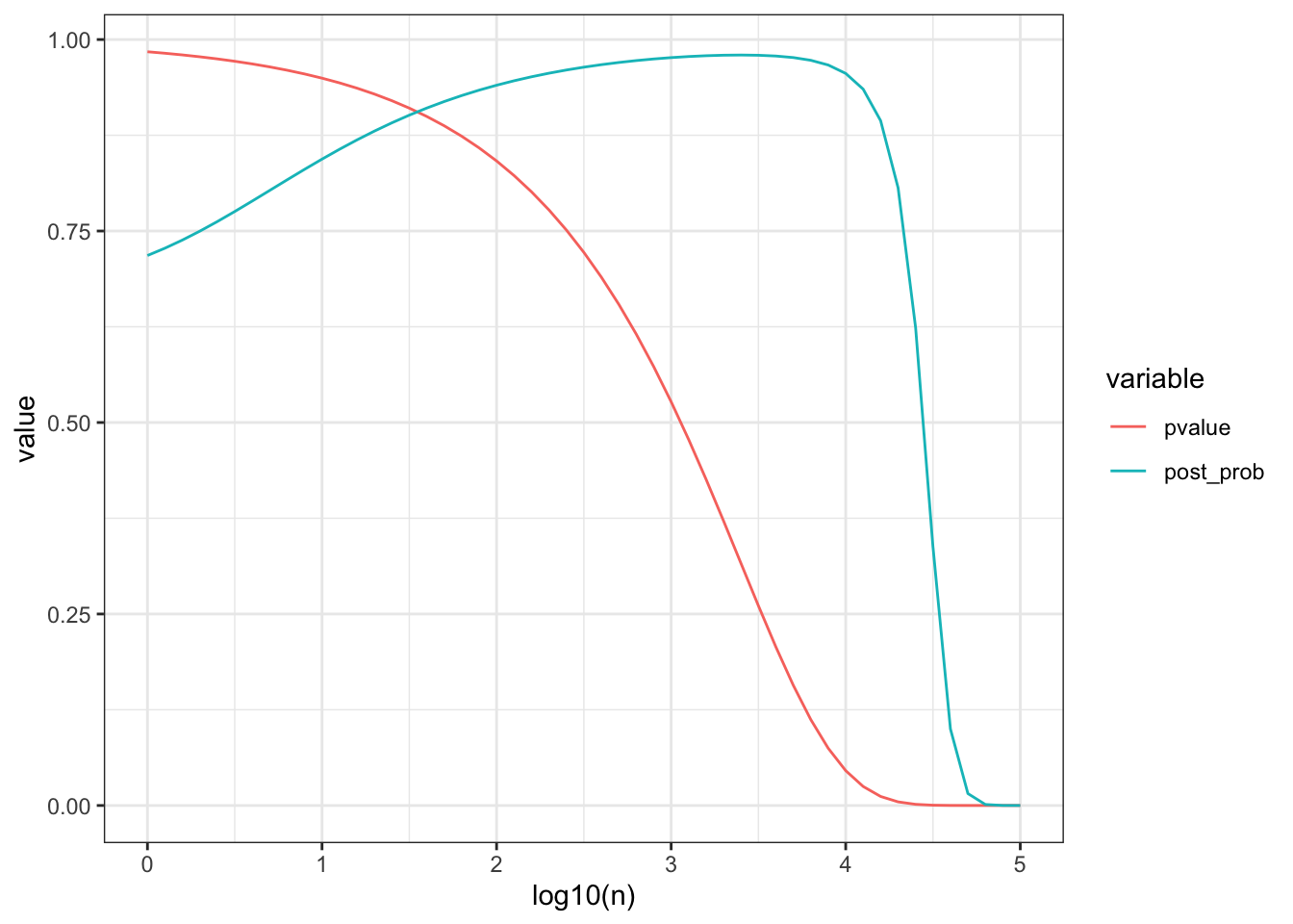 - Jeffrey prior/posterior are the limits of the conjugate prior/posterior as \(C \rightarrow \infty\), i.e. \(\lim_{C\rightarrow \infty} N(m, C) \stackrel{d}{\rightarrow} \propto 1\) and \(\lim_{C \rightarrow \infty} N(m', C') \stackrel{d}{\rightarrow} N(\bar y, s^2/n)\).