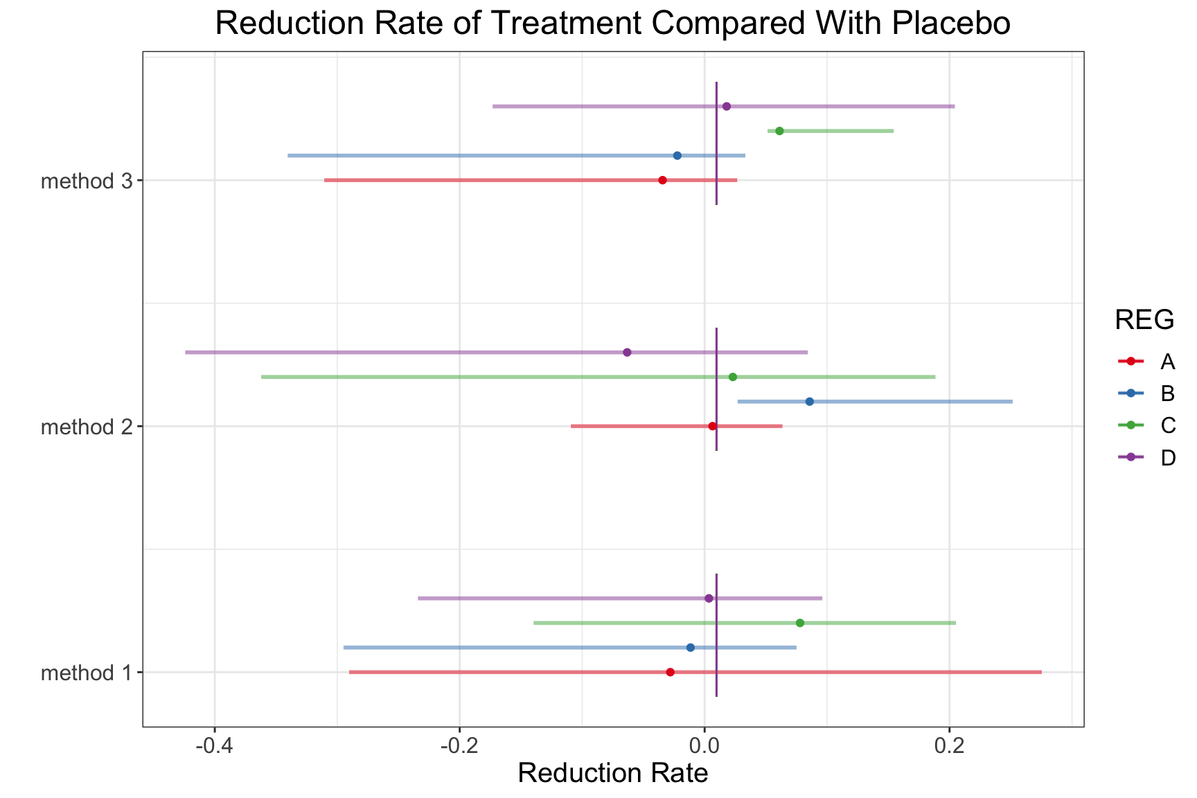 ggtitle("Reduction Rate of Treatment Compared With Placebo") +