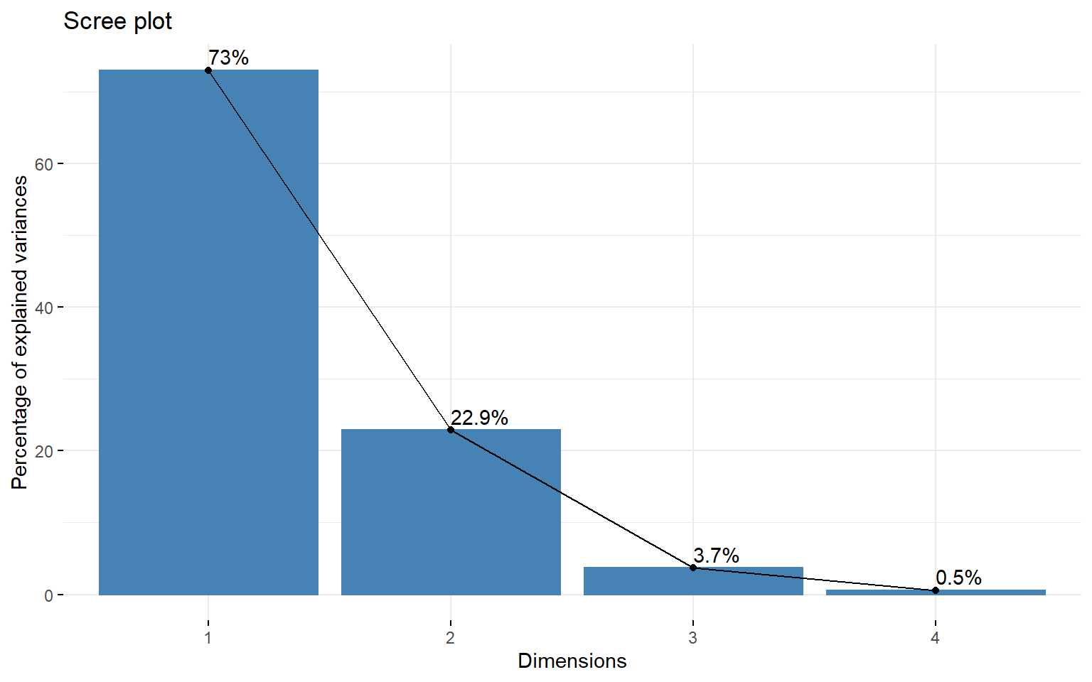 | ScreePlot | factoextra::fviz_screeplot(res, addlabels = TRUE) |
