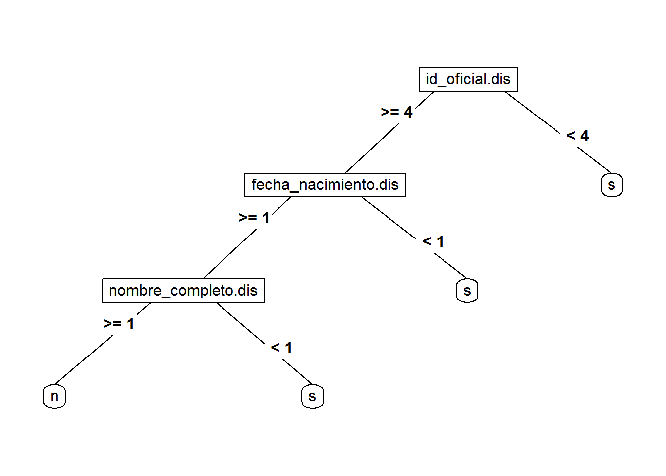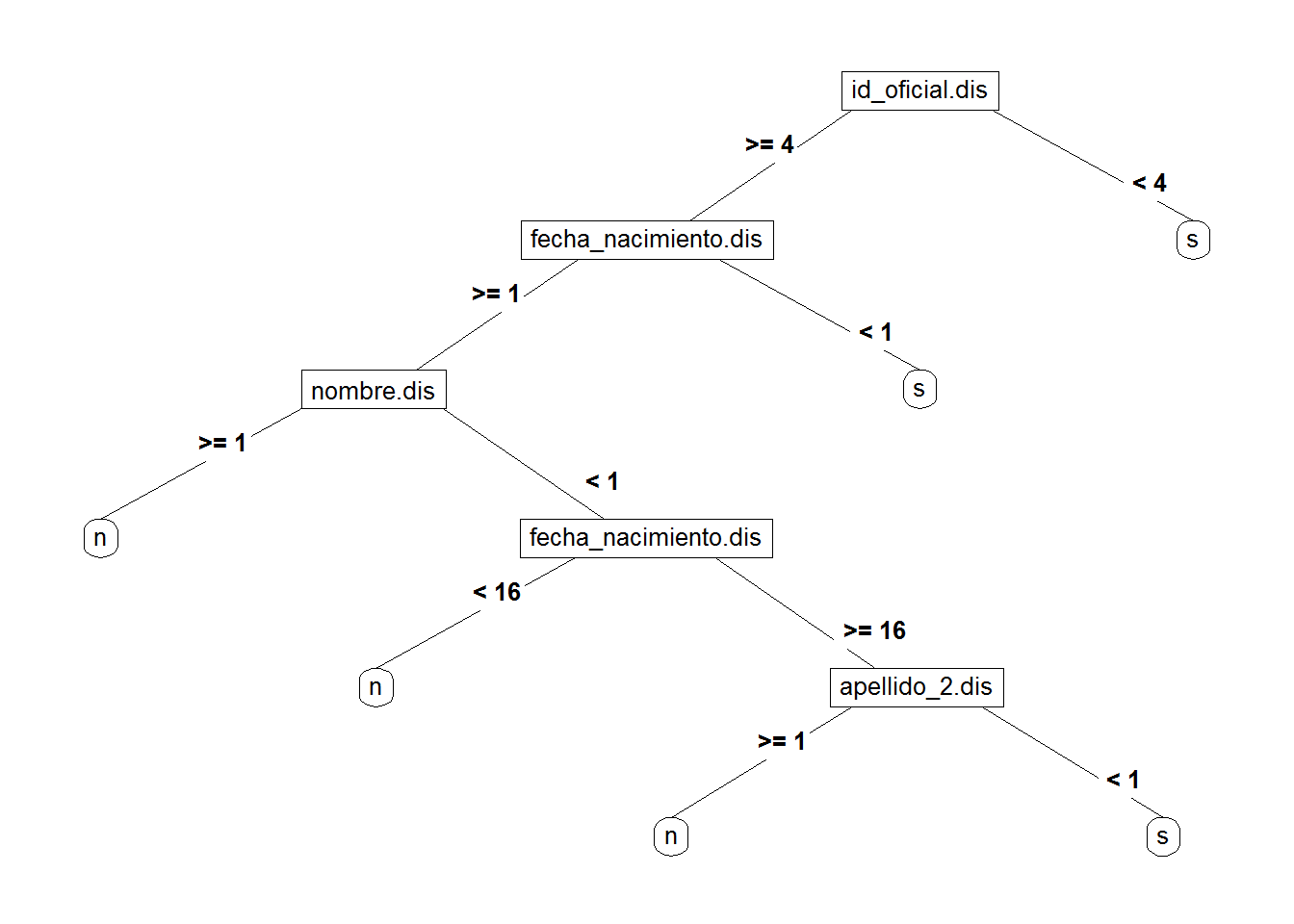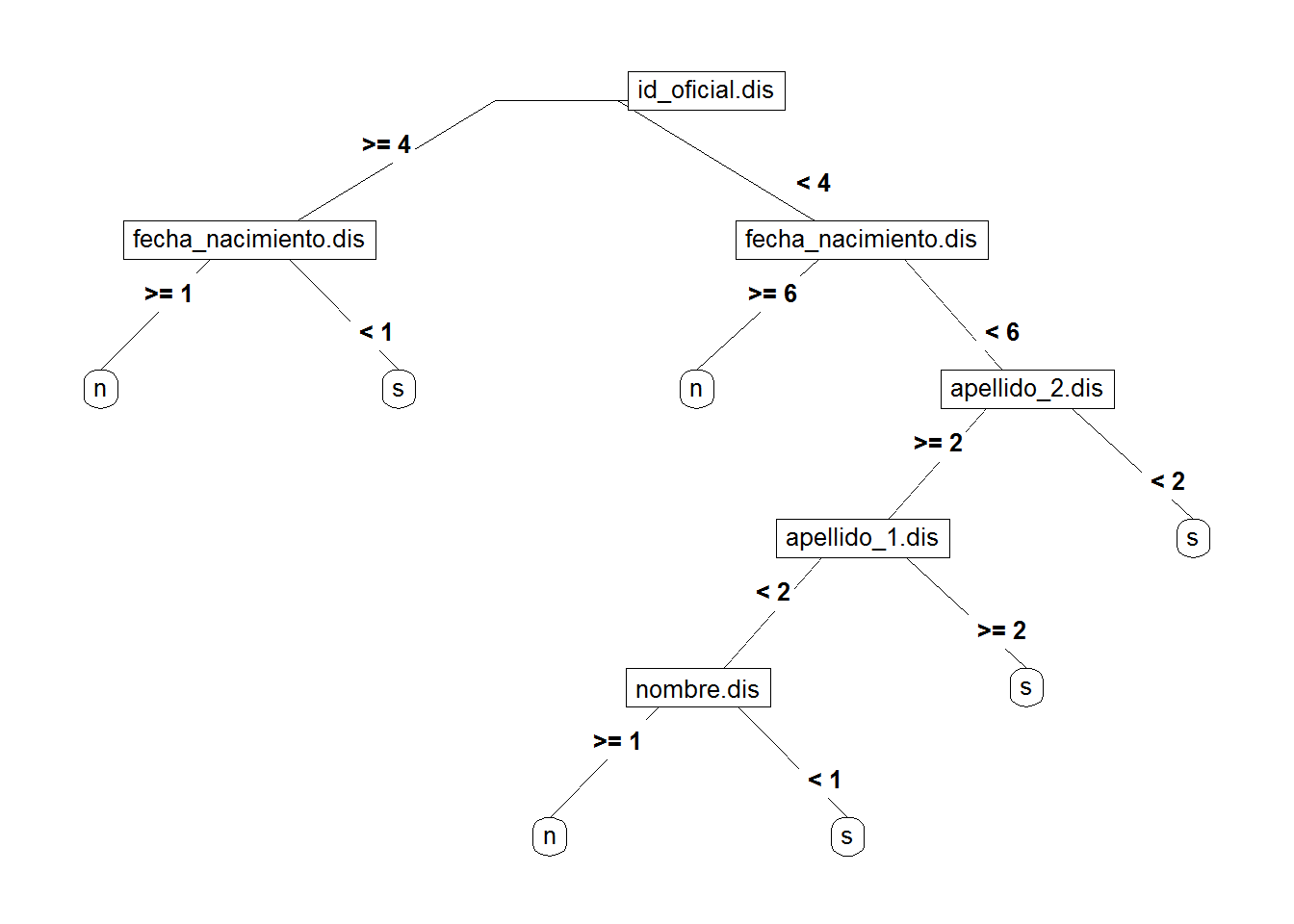 test_sin_na = subset(muestra_sin_na, sample == FALSE)Entrenamiento. Las características de entrenamiento son otra vez solo las distancias entre las variables a comparar: