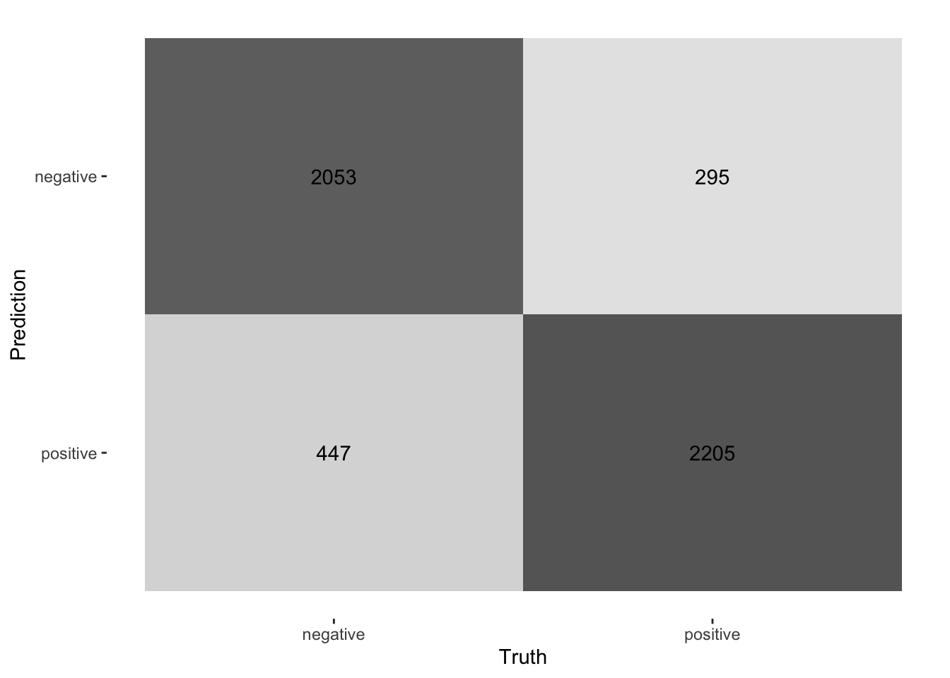 In the next part, other approaches such as Support Vector Machines (SVM), penalized logistic regression models (penalized here means, loosely speaking, that insignificant predictors which contribute little will be shrunk and ignored – as the text contains many tokens that might not contribute much, those models lend themselves nicely to such tasks), random forest models, or XGBoost will be introduced. Those approaches are not to be explained in-depth, third-party articles will be linked though, but their intuition and the particularities of their implementation will be described. Since we use the tidymodels (Kuhn and Wickham 2020) framework for implementation, trying out different approaches is straightforward. Also, the pre-processing differs, recipes and textrecipes facilitate this task decisively. Third, the evaluation of different classifiers will be described. Finally, the entire workflow will be demonstrated using a Twitter data set.