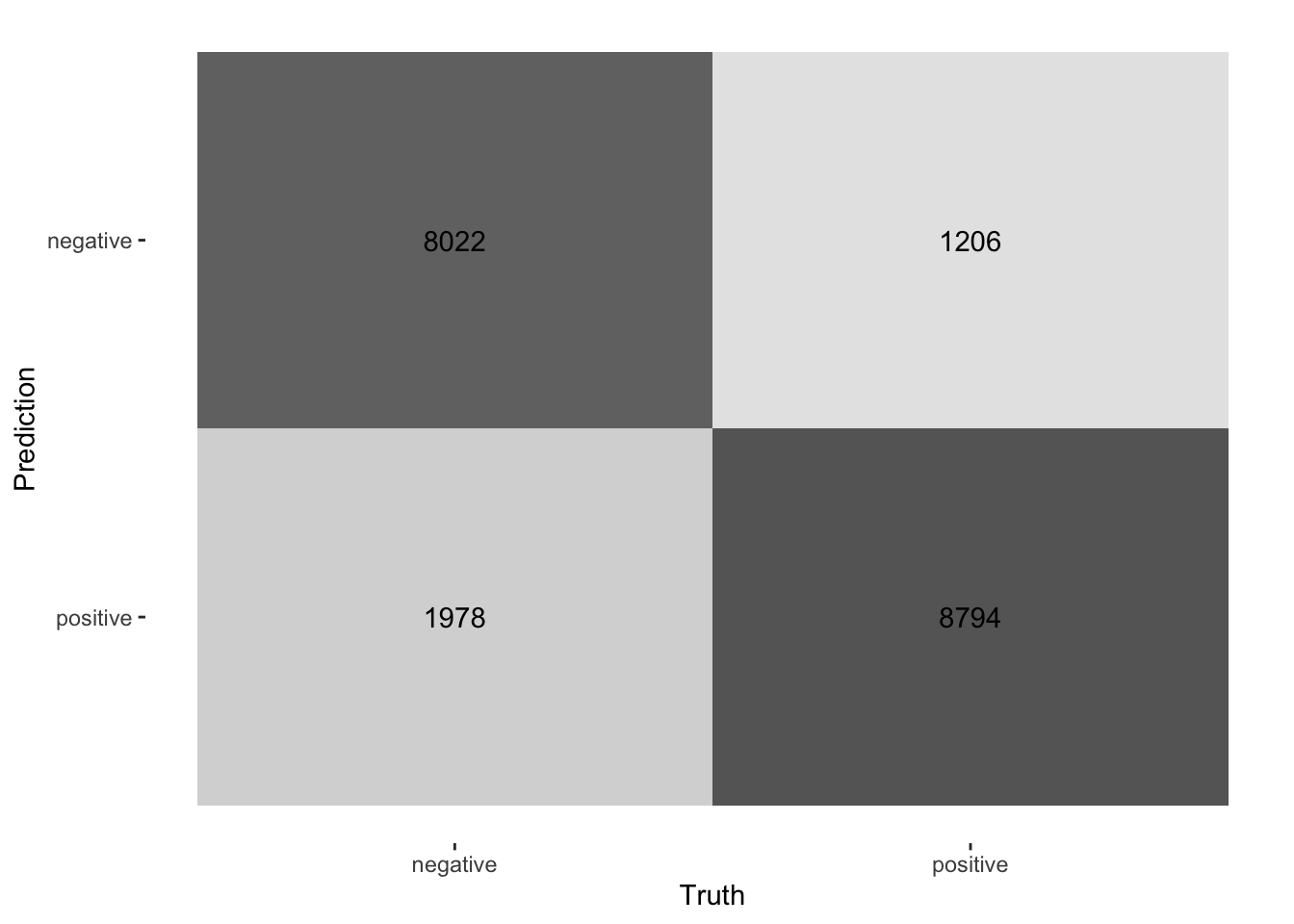 conf_mat(truth = sentiment, estimate = .pred_class) |>