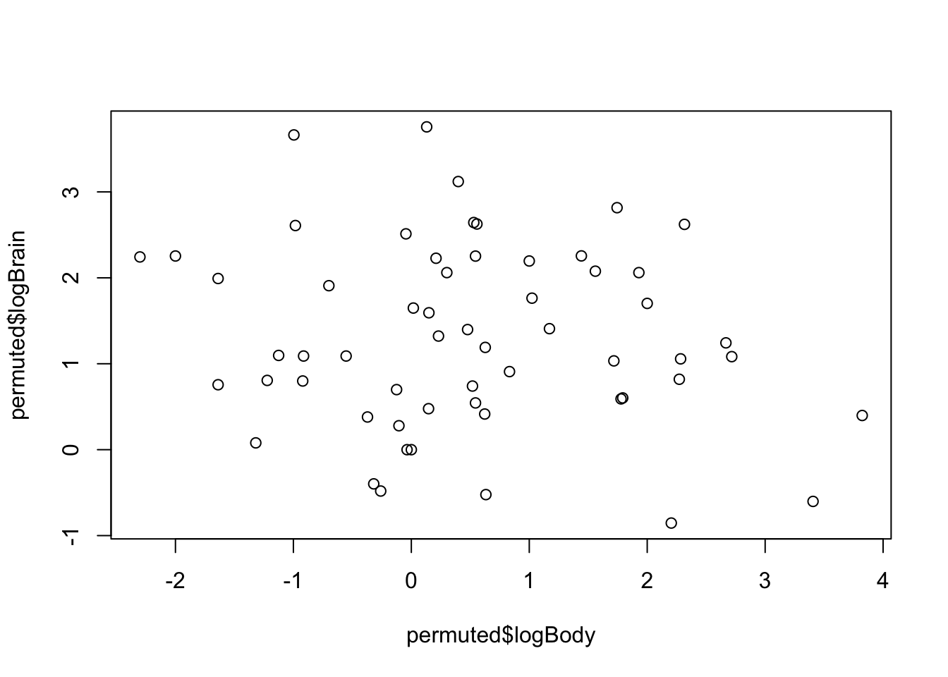 permest <- lm(logBrain ~ logBody, data=permuted)$coeff[2]
