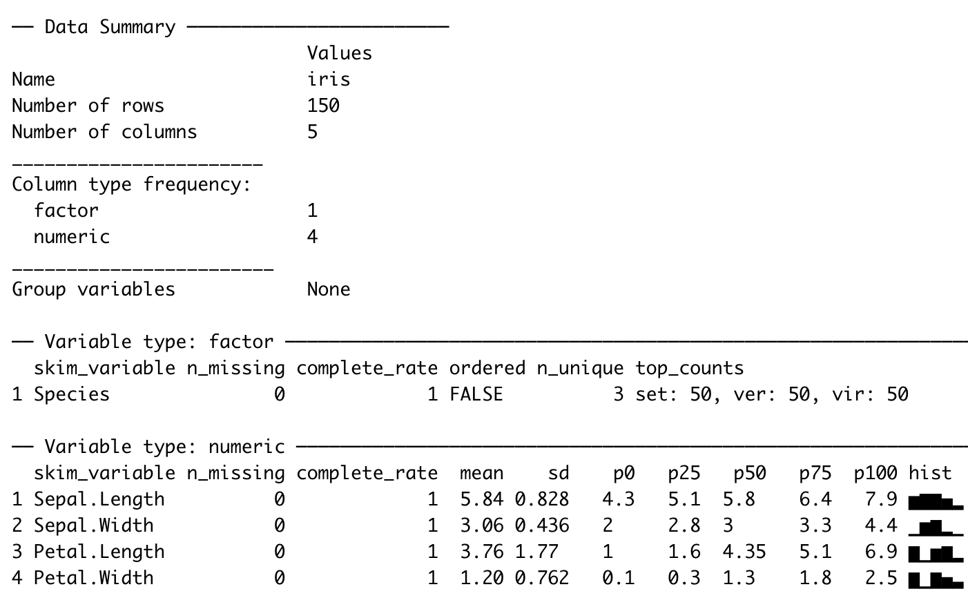 summary(iris)## Sepal.Length Sepal.Width Petal.Length Petal.Width
