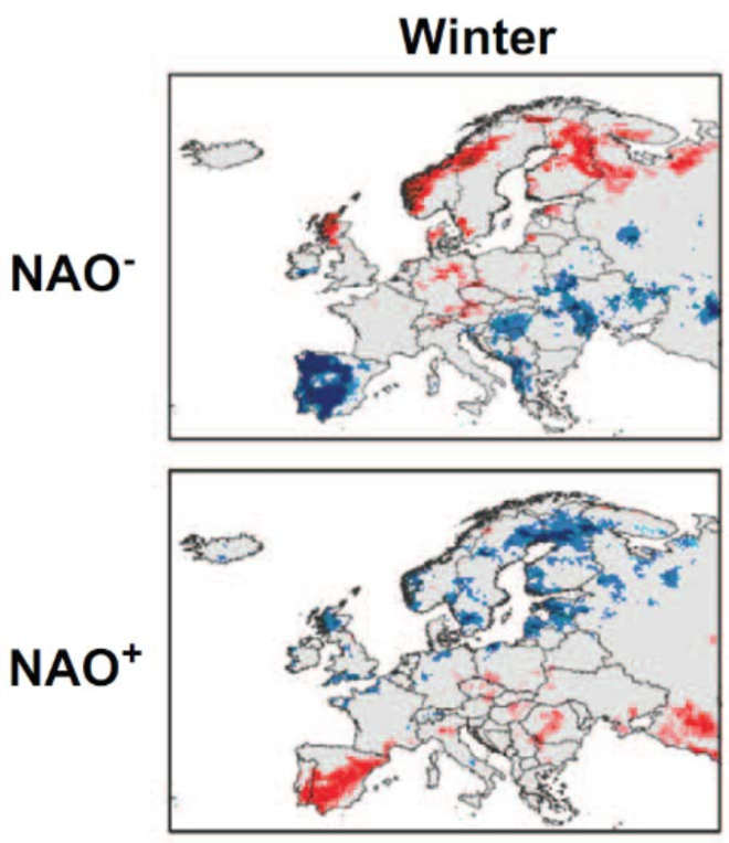 Climate variability is often expressed as anomaly, in months-seasons-years. Depending on the location, these can be influenced by e.g. the North Atlantic Oscillation (Europe) or El Niño/La Niña: