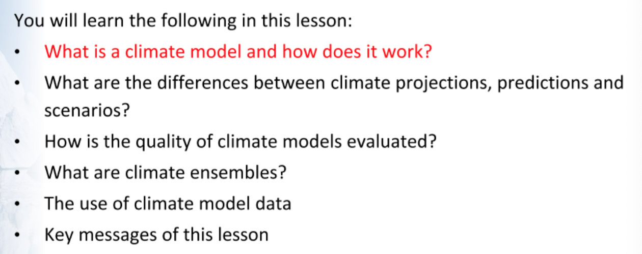- For an explanation of the difference between weather and climate (models), see the dedicated section in lesson 1.