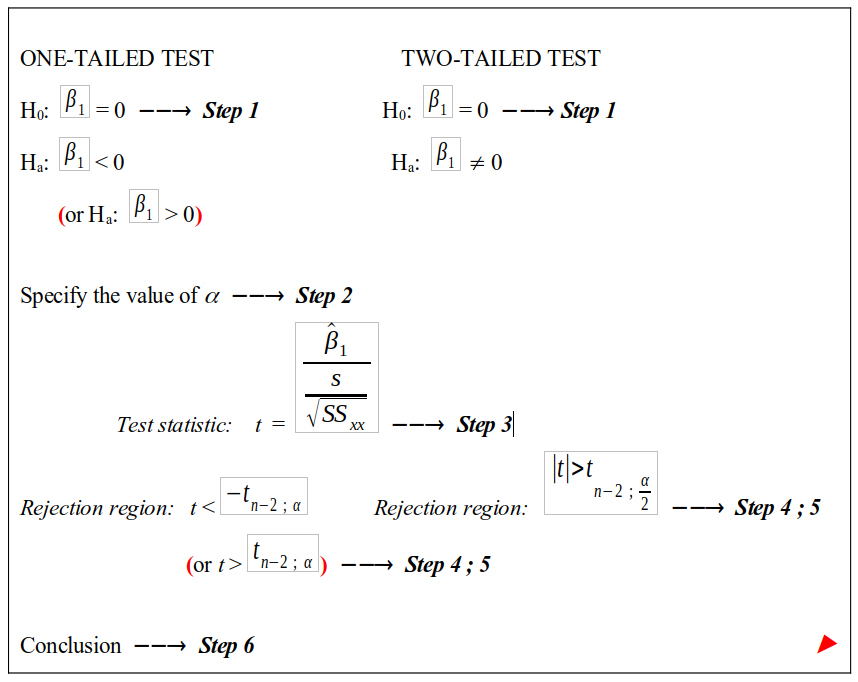 - State \(H_{0}\) and \(H_{a}\). We have to go back to the question to decide what sign will be used in \(H_{a}\). The question ask us to test for negative linear relationship and therefore the sign is “<”. The answers for step 1 is :
