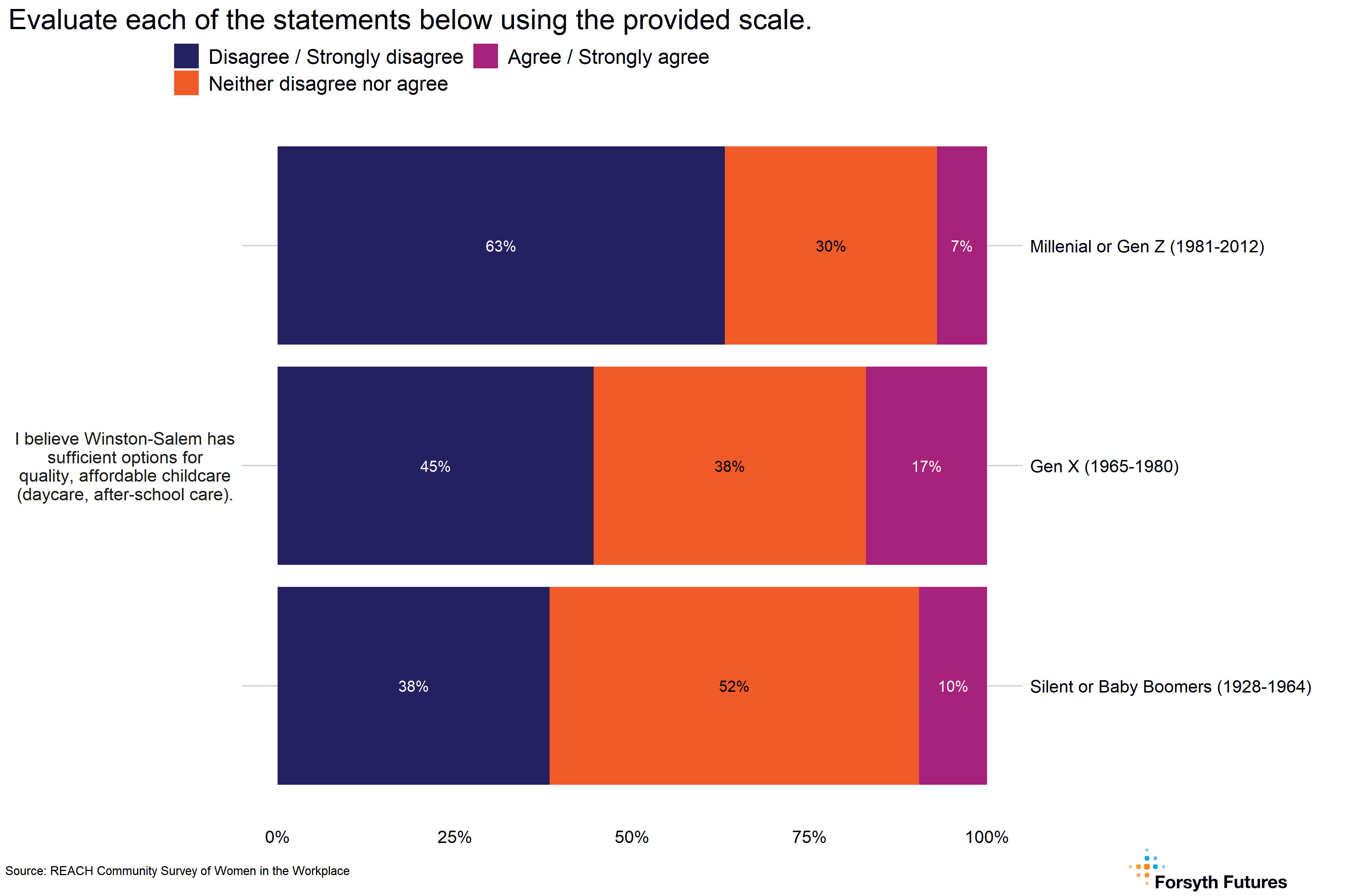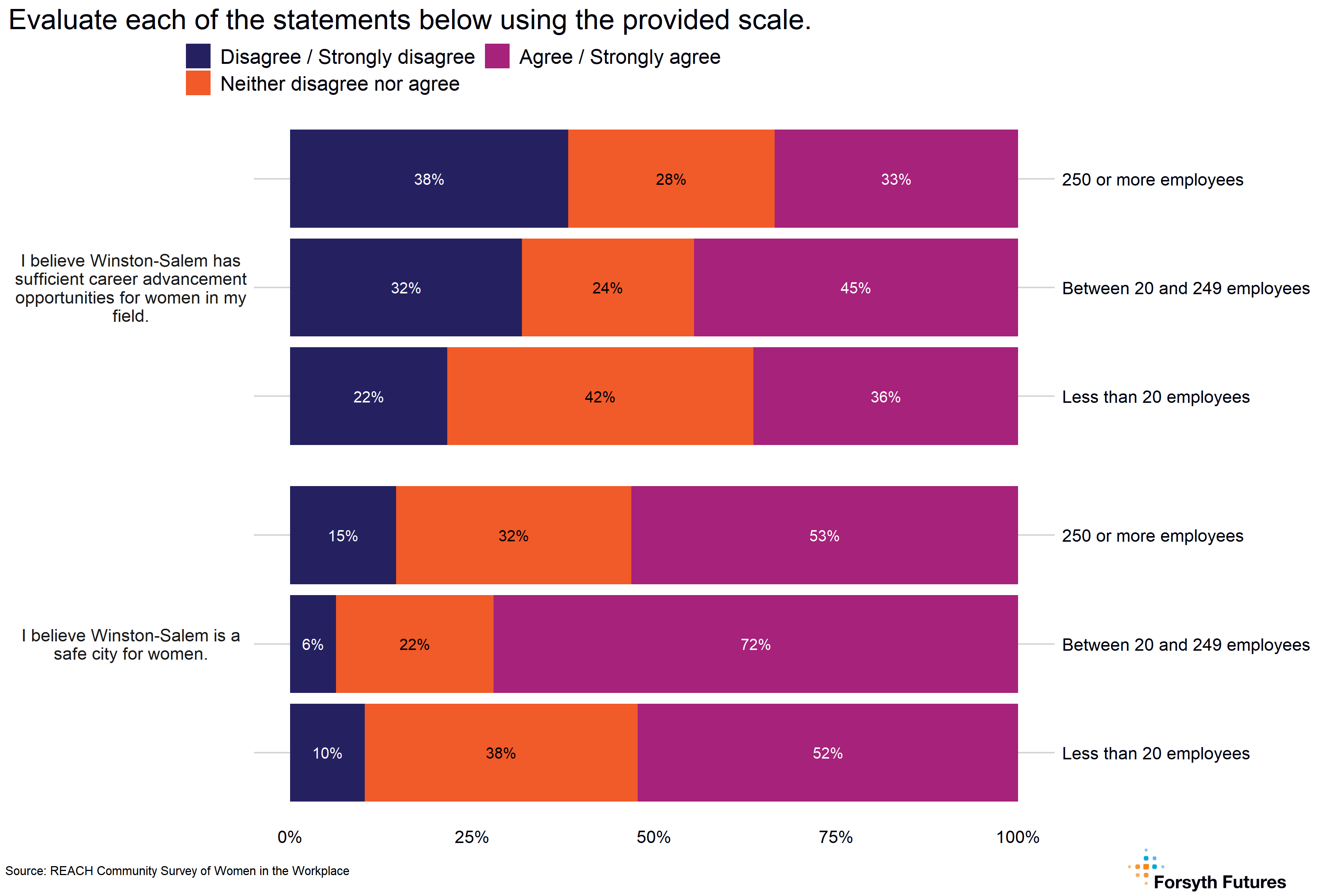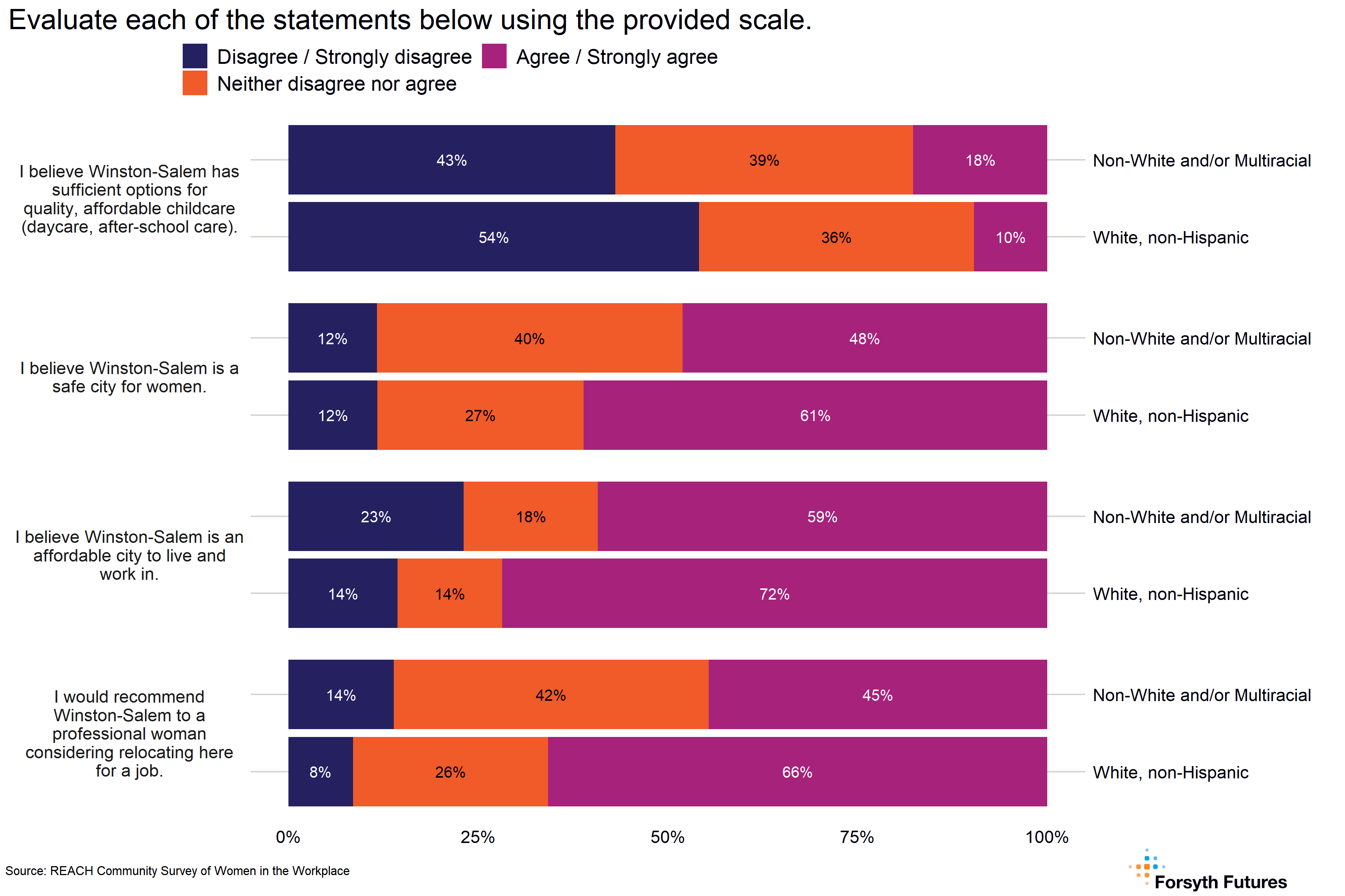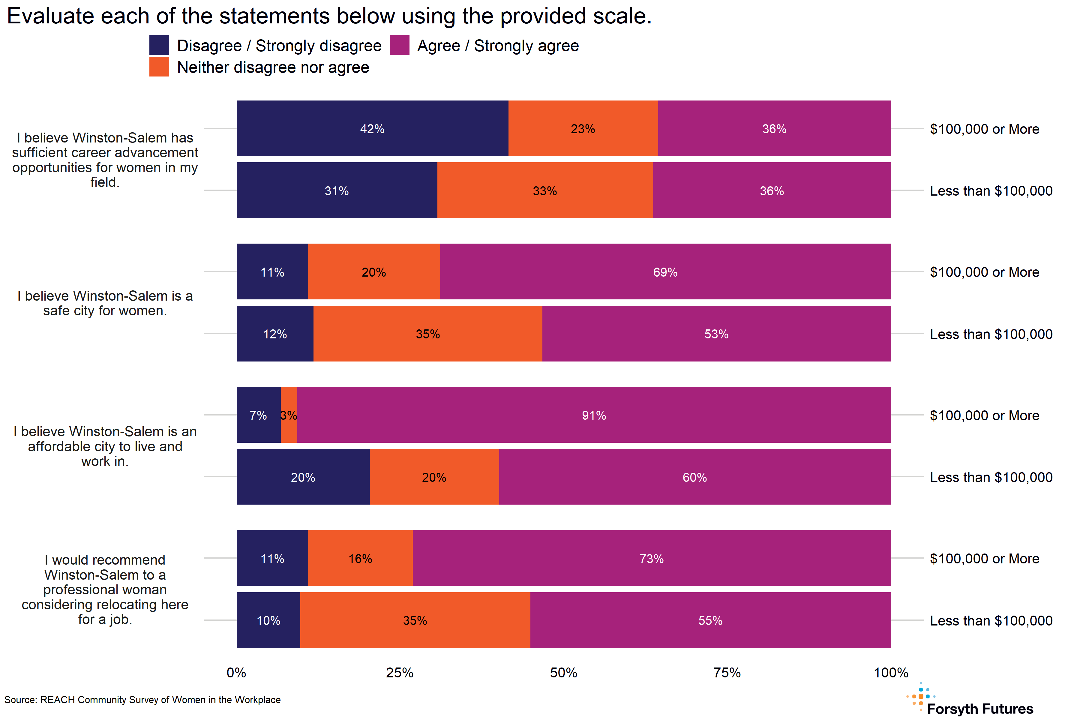 Among the disaggregations, analysts found the following statistically significant relationship between women’s perceptions and attitudes of being a working woman in Winston-Salem: