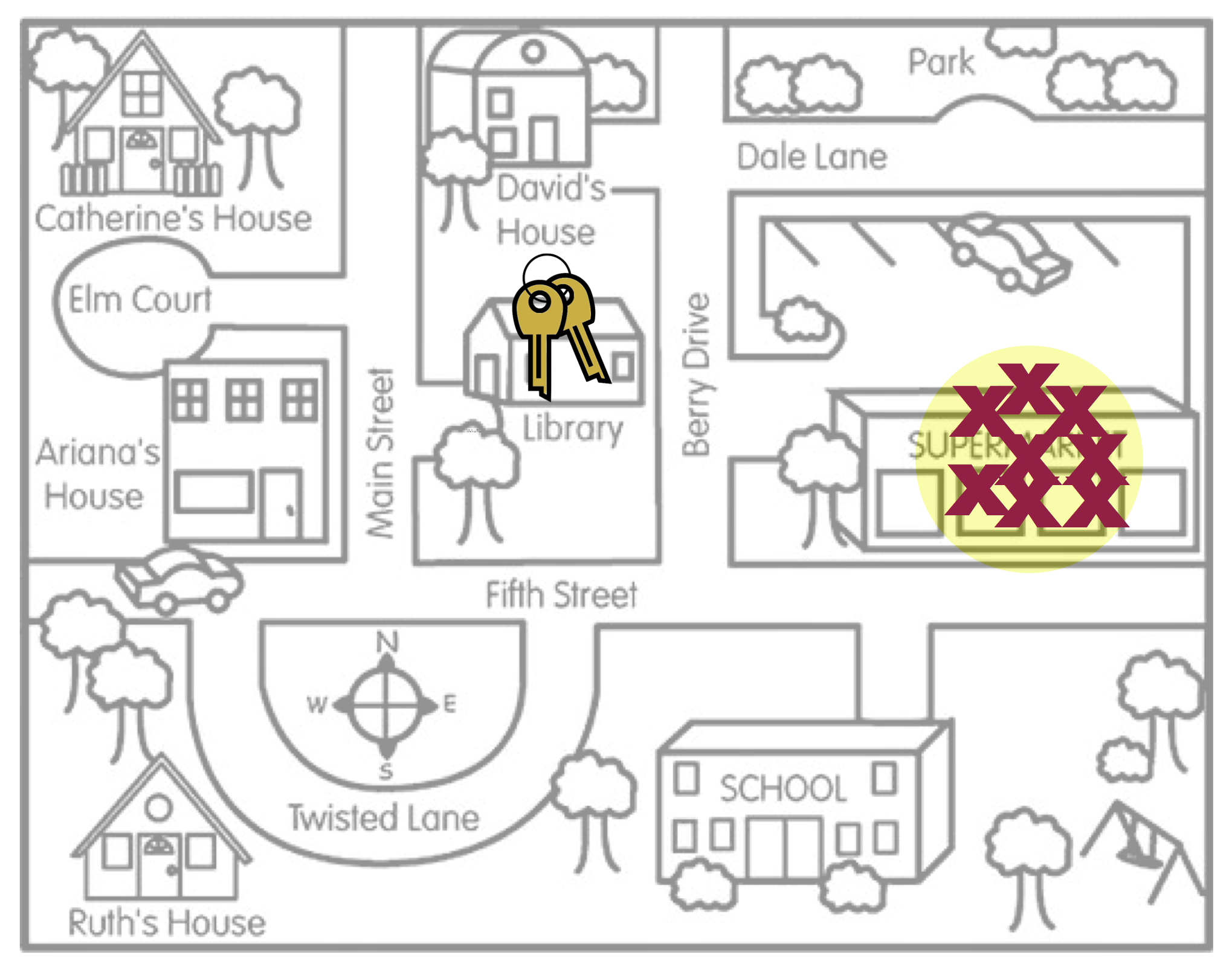 To help you think about bias, imagine a person, Arthur Dent, has lost his keys. The actual location of the keys, the Library, is akin to the population parameter. Arthur believes he lost his keys at the Supermarket and searches several places around the Supermarket. The locations where Arthur searches are like sample statistics.