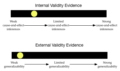 Remember there are two primary questions that you should ask when evaluating a study’s design: (1) How were the study participants selected from the population? This helps us think about the degree of external validity evidence, and (2) How were the selected study participants assigned to conditions? This helps us situate the internal validity evidence.