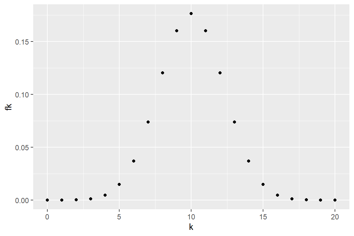 distr <- data.frame(k = 0:n, fk = dbinom(0:n, n, p))