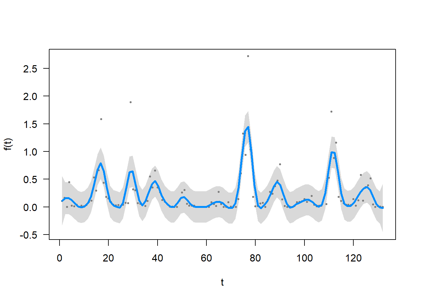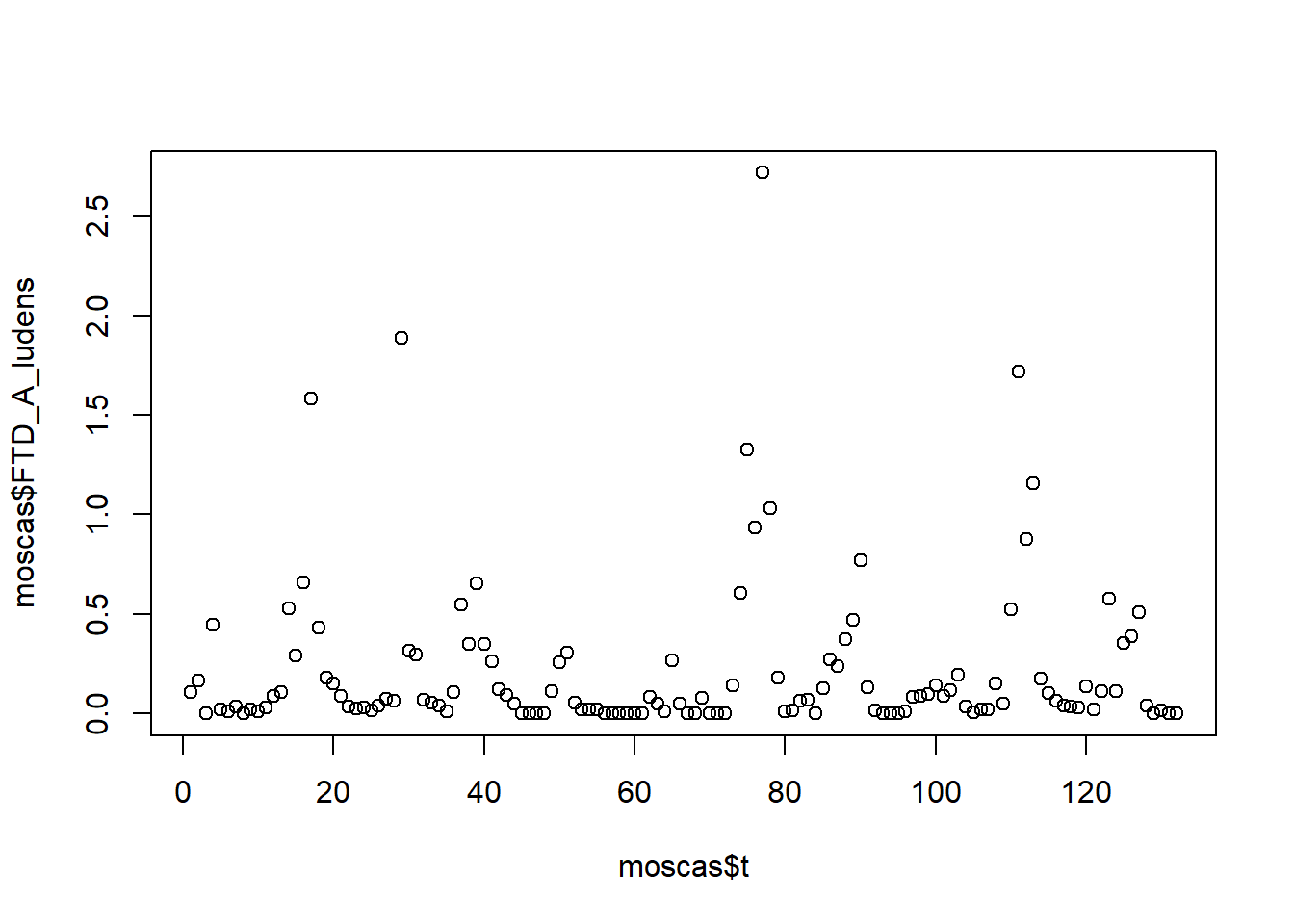gamm.ar1 <- gamm(FTD_A_ludens ~ s(t, k = 60), family = gaussian, correlation = corAR1(form = ~ t), data = moscas)