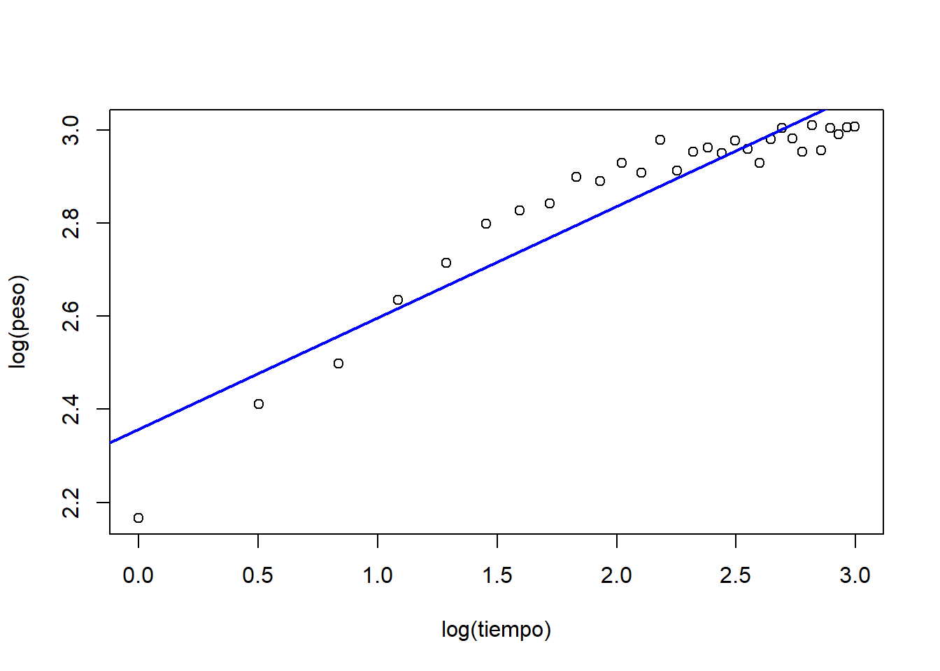 m.crec <- lm(log(peso) ~ log(tiempo))