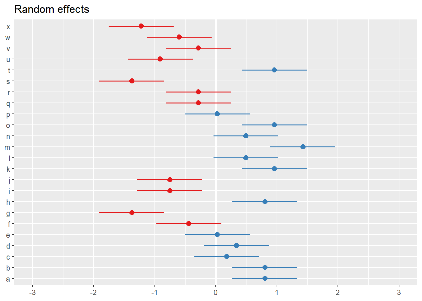Realice un gráfico que muestre los efectos aleatorios, e interprete la varianza del efecto aleatorio y la residual.