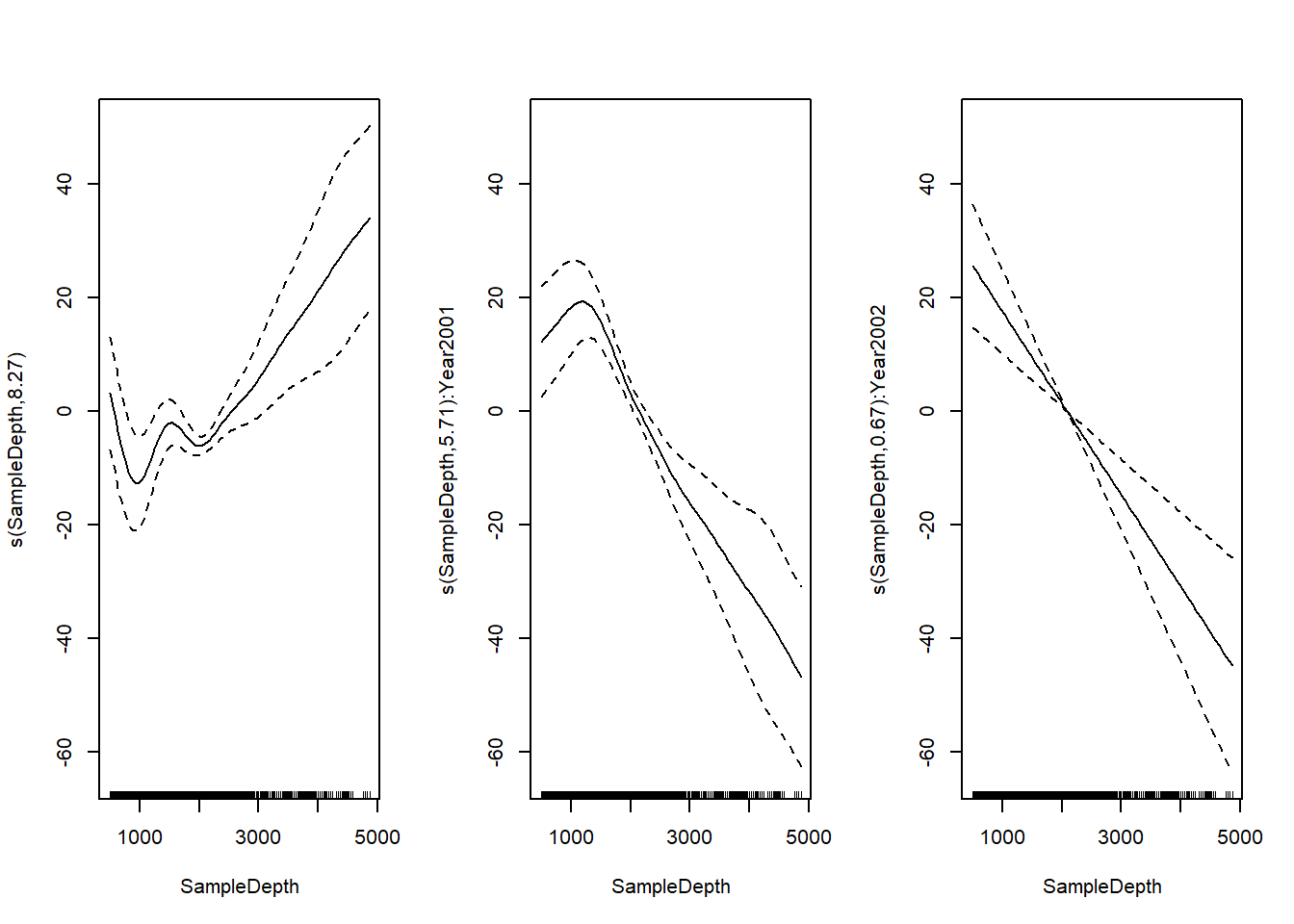 ## s(SampleDepth) 8.857 8.992 5.304e+01 < 2e-16 ***