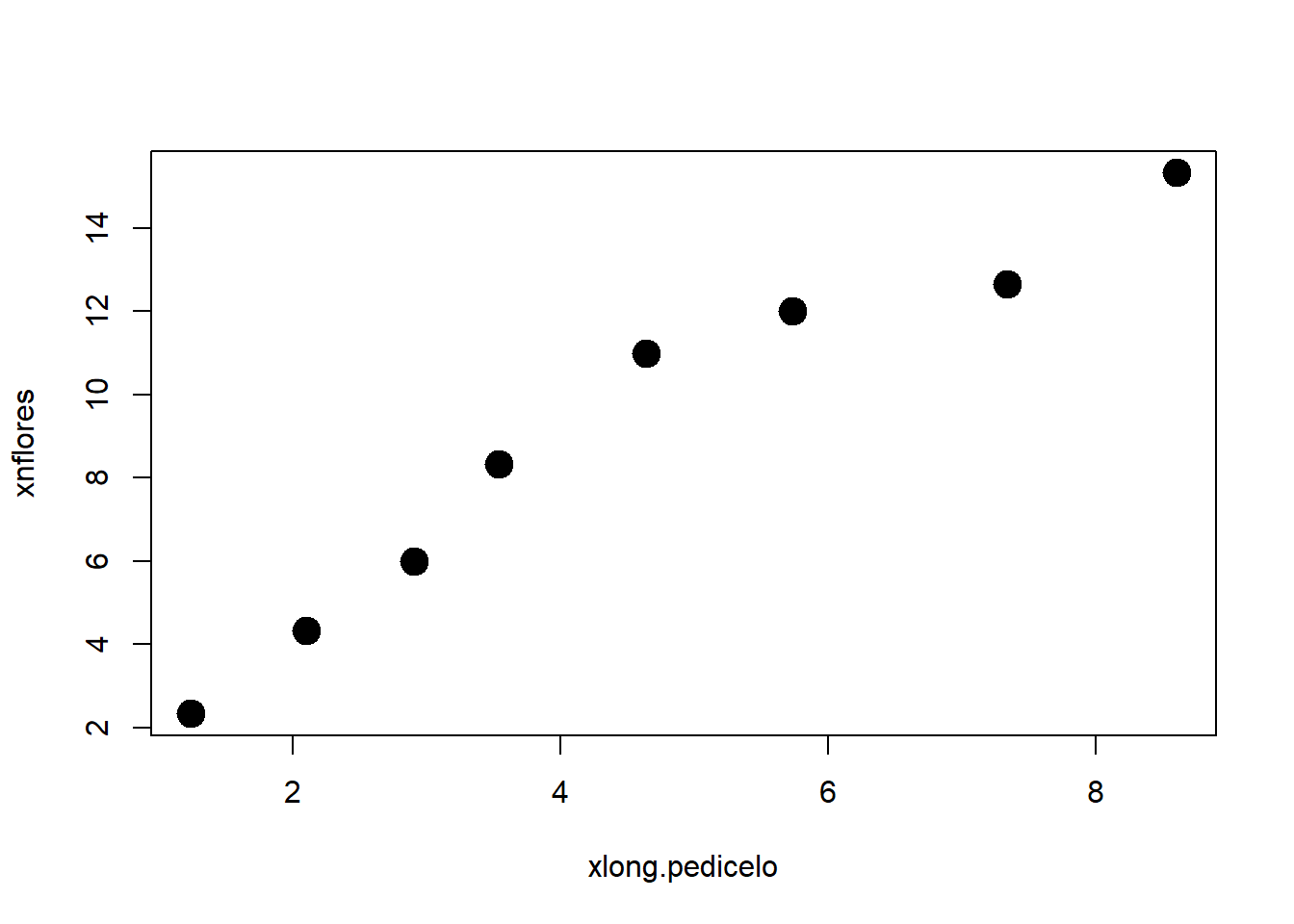 plot(xlong.pedicelo, xnflores, pch = 19, cex = 2)