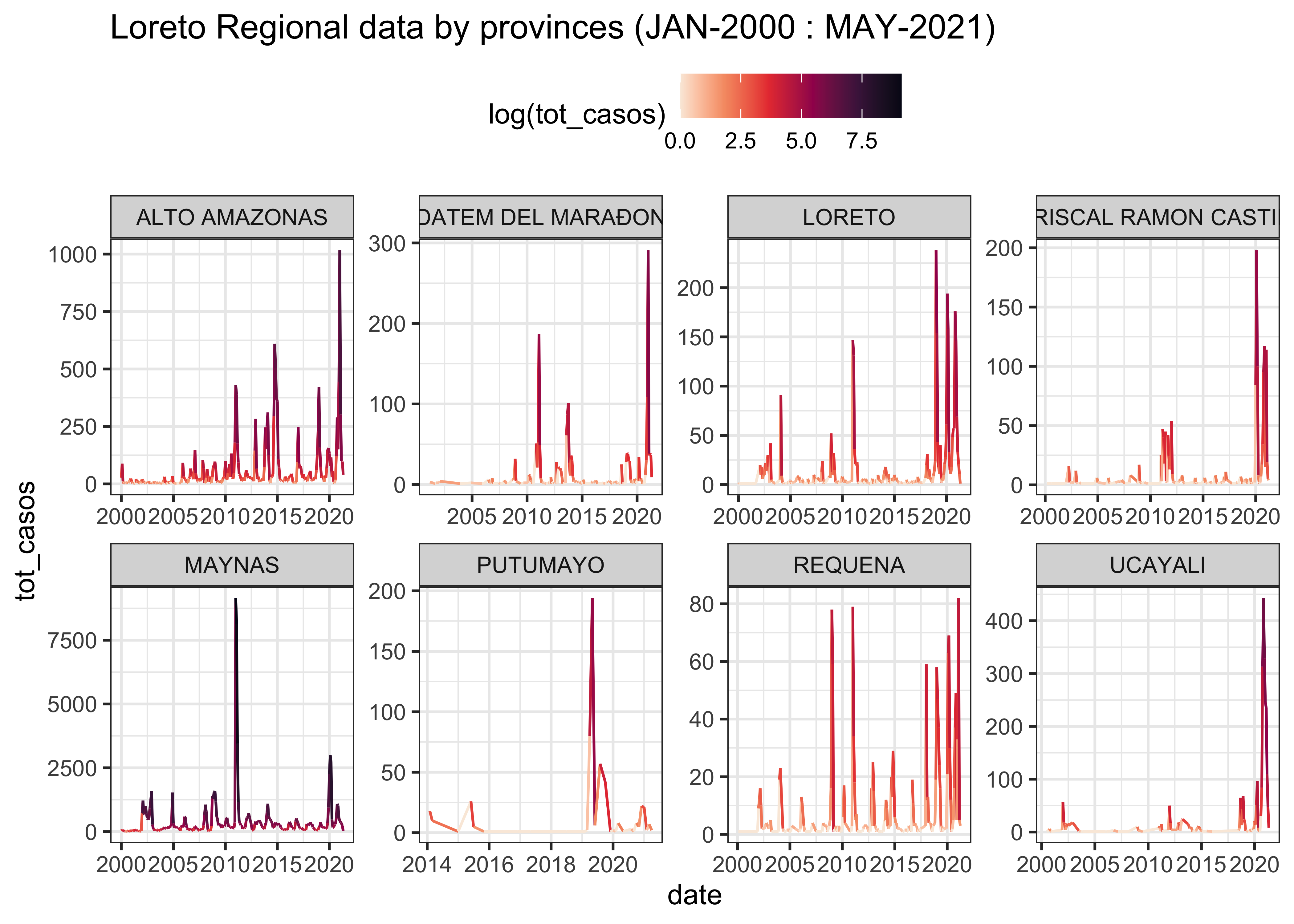 labs(title = "Loreto Regional data by provinces (JAN-2000 : MAY-2021)") +