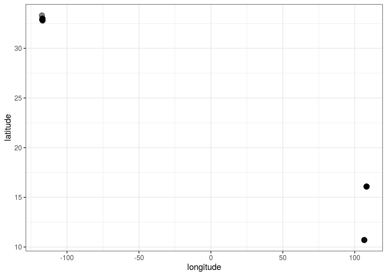 geom_point(aes(longitude, latitude), size = 3, alpha = .5) +