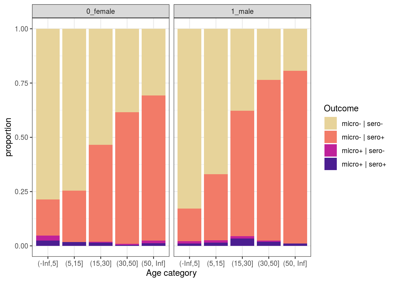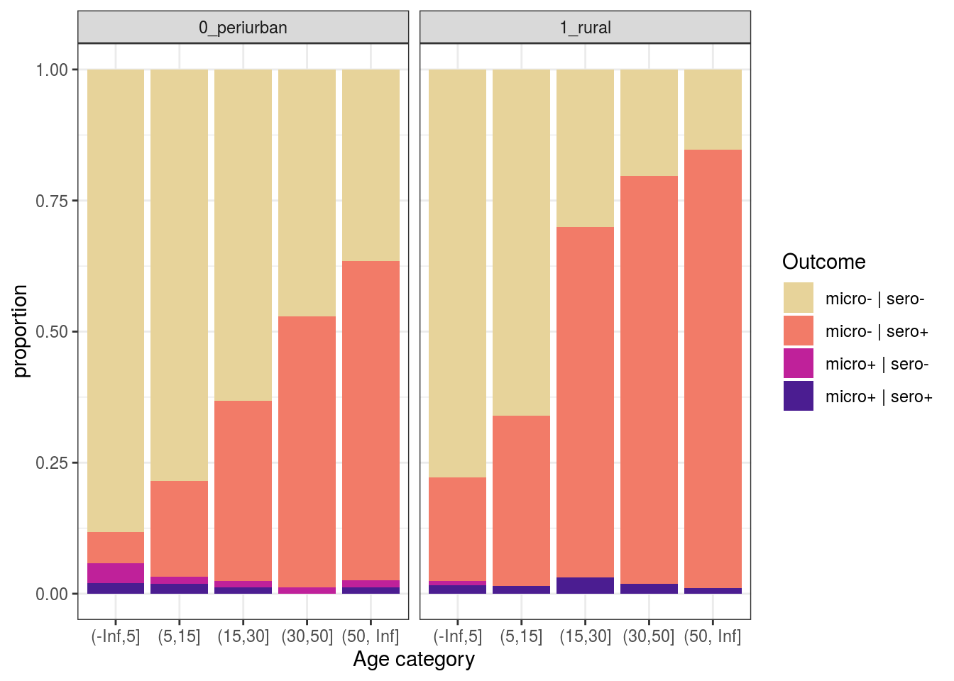 labs(y = "proportion", x = "Age category", fill = "Outcome") +