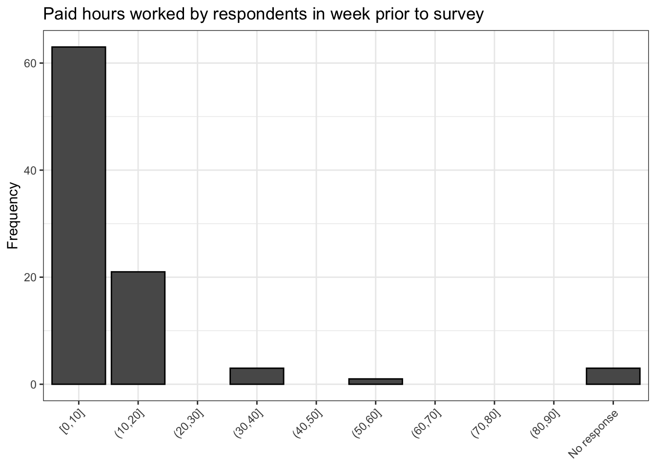 title = 'Paid hours worked by respondents in week prior to survey') +